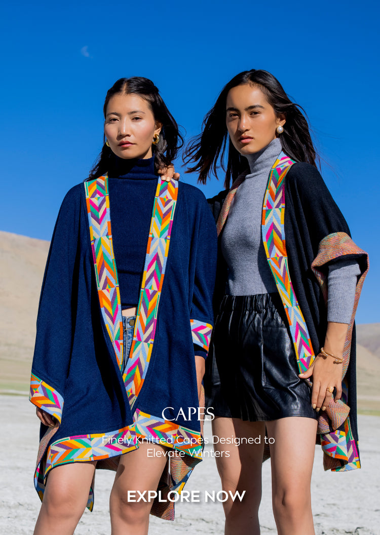 Crafted in fine lambswool, the Ember Mosaic Poncho brings together rich rust tones with multi-color panels in an artful interplay of texture and pattern. The high-neck design lends a sculpted elegance, perfect for modern sophistication. MATERIAL: Premium Lambs Wool WASHCARE - Hand wash using...