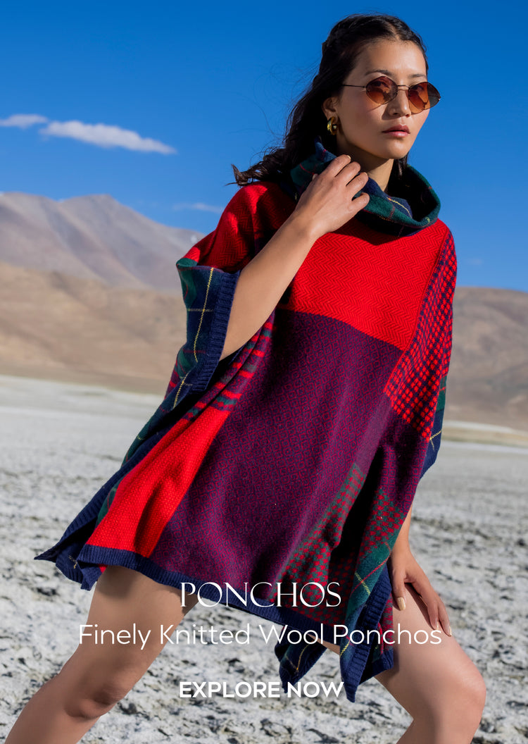 In striking garnet hues, the Garnet Mosaic Poncho elevates lambswool luxury with its multi-color detailing and refined high-neck silhouette. A piece that captures both heritage charm and elevated modern styling. MATERIAL: Premium Lambs Wool WASHCARE - Hand wash using approved wool detergent. - Rinse...