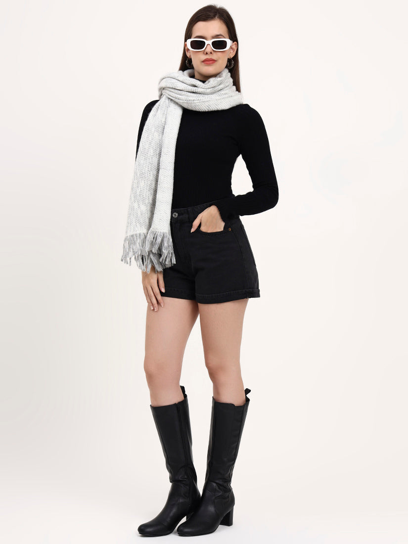 Crisp winter white in a refined herringbone pattern, giving a modern yet timeless appeal. Light, breathable, and luxuriously soft, ideal for fresh transitional dressing.