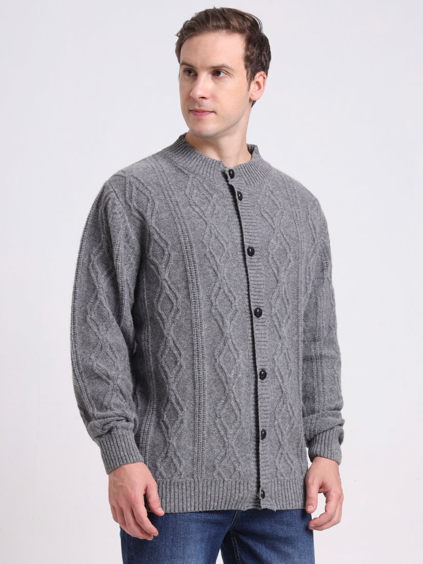 The Ashcroft Cable Cardigan blends classic tailoring with heritage craftsmanship. Knitted from lambswool, its structured cable motifs and refined button closure evoke timeless British style while ensuring comfort through the seasons.