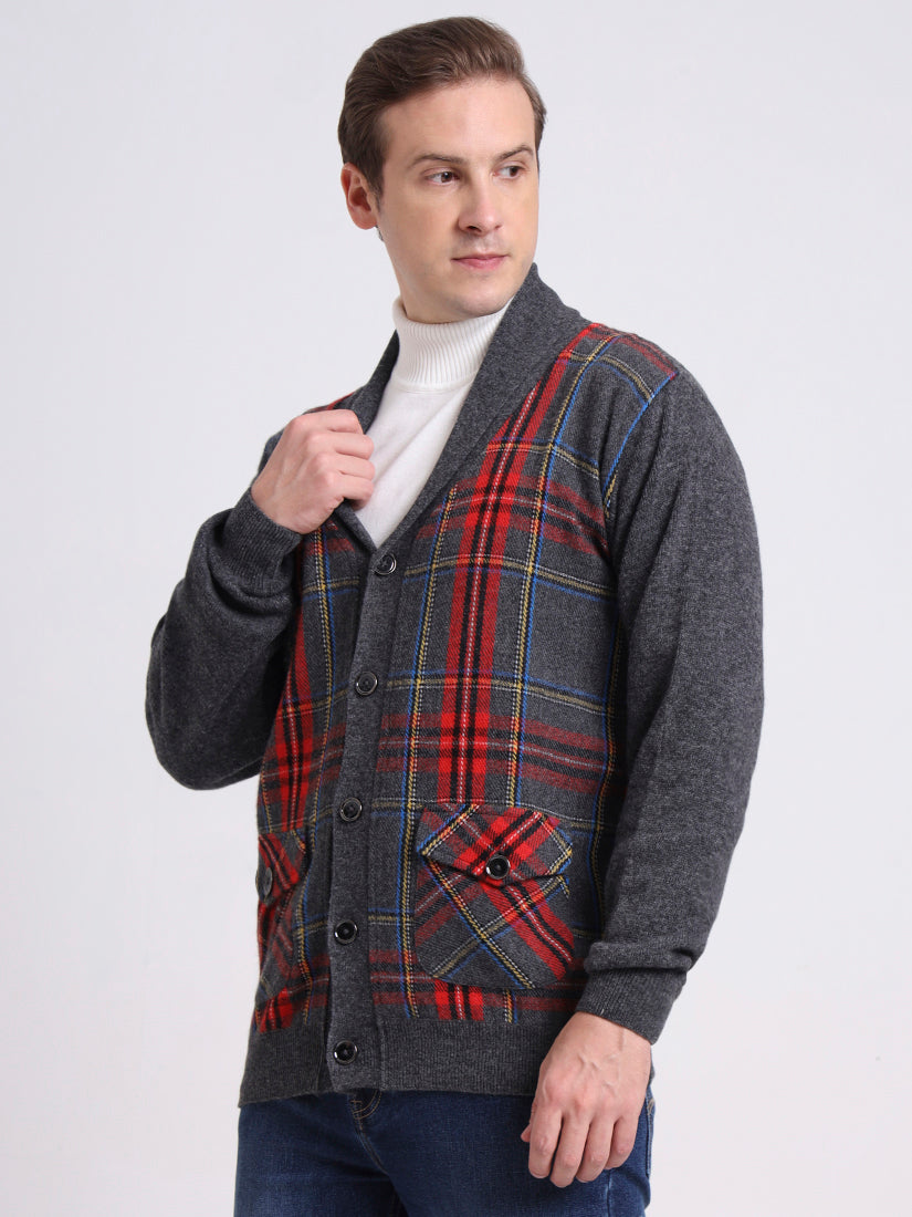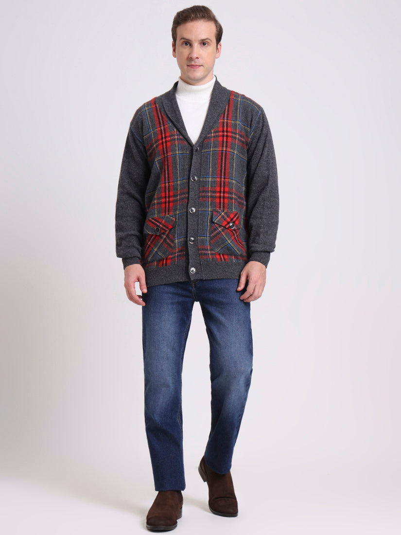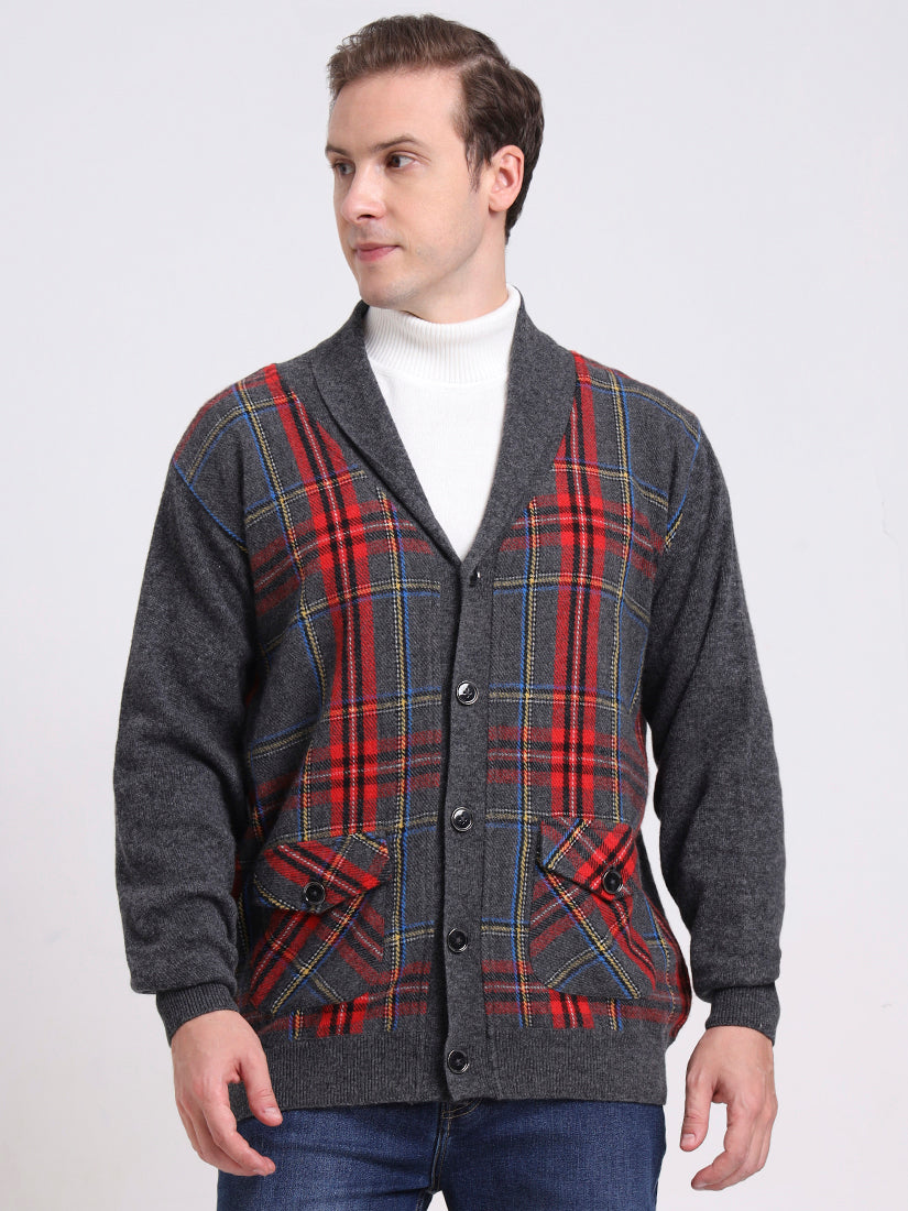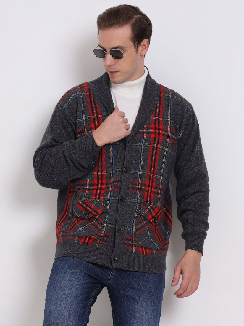 A deep grey canvas enlivened with muted checks, designed for understated sophistication. Functional pockets and sharp tailoring give this piece versatility, making it a smart addition to a modern wardrobe.