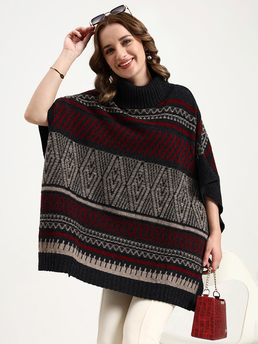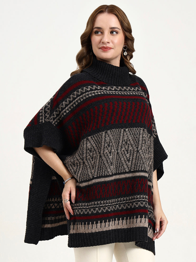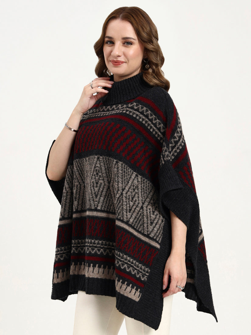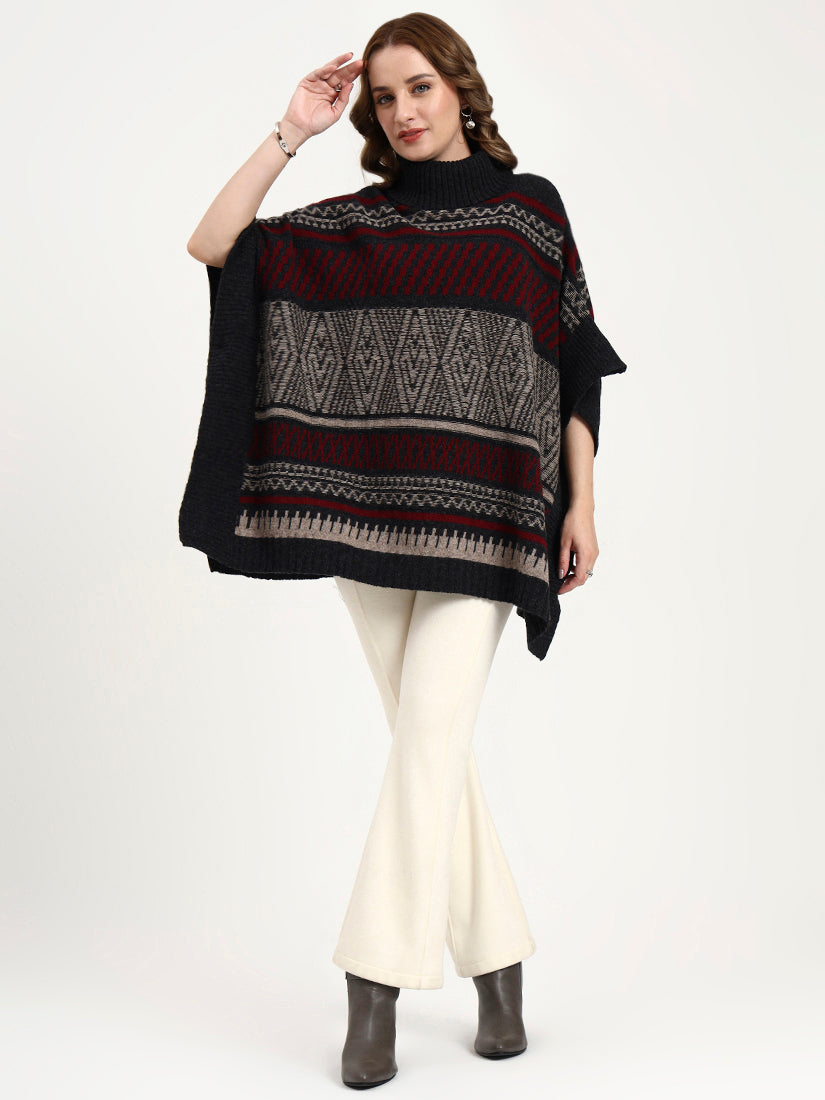 The Ashmoor Heritage Poncho combines soft grey with intricate woven patterns, creating a piece that is both classic and contemporary. Its textured motif adds character, while the relaxed cut offers effortless layering for any occasion.
