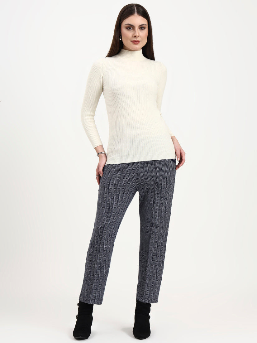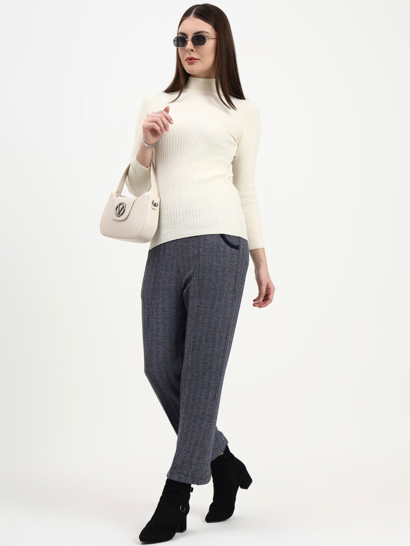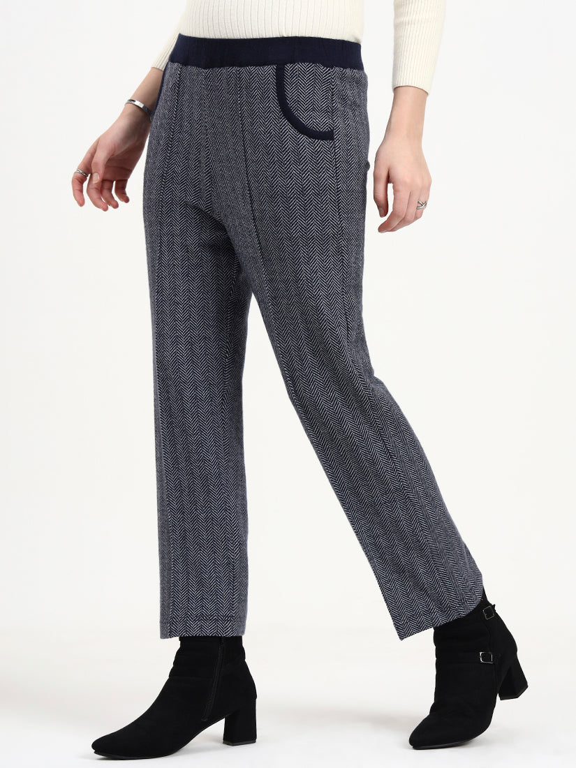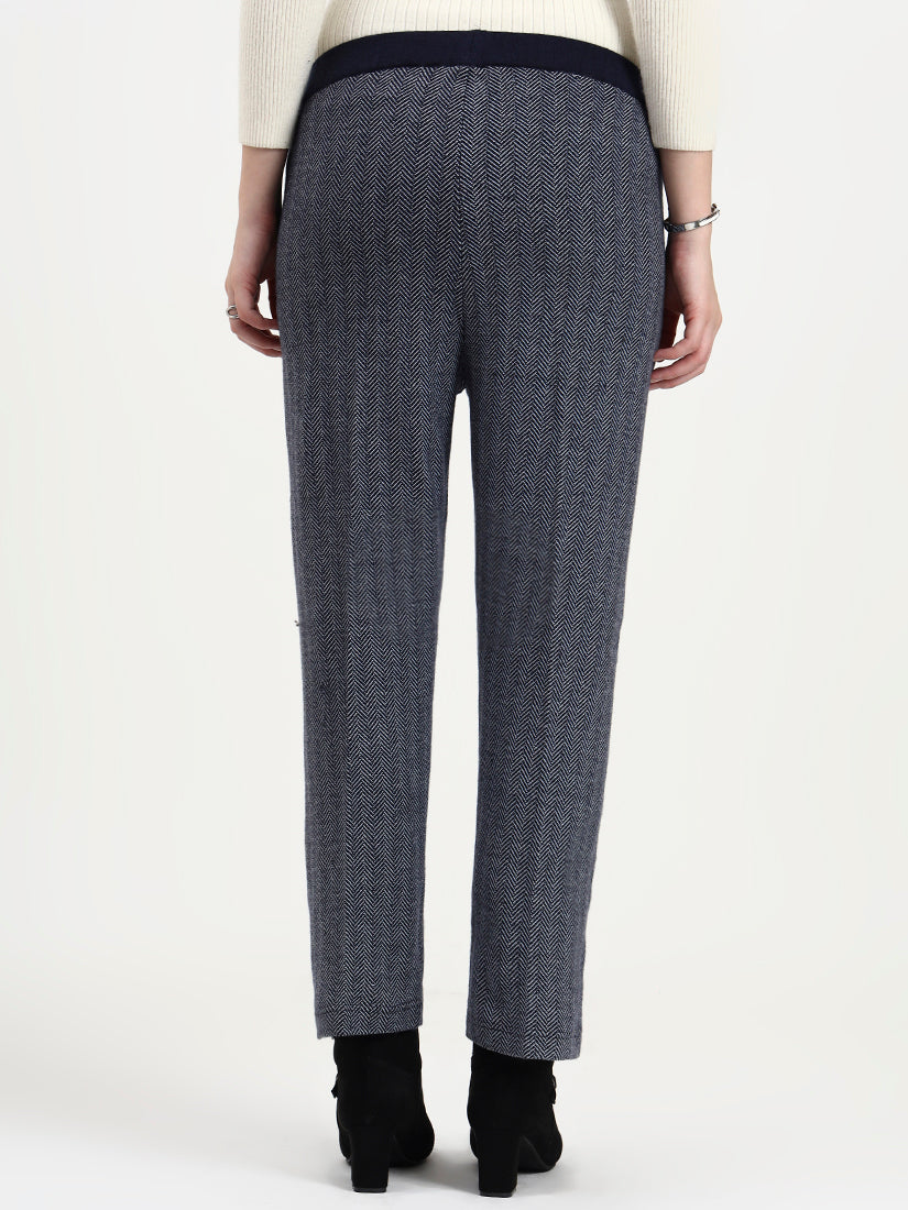 Aven Twilight Herringbone Trouser blends modern tailoring with timeless depth. The refined blue weave adds quiet character to its structured silhouette, offering both comfort and sophistication, a polished essential that transitions seamlessly from day to evening.