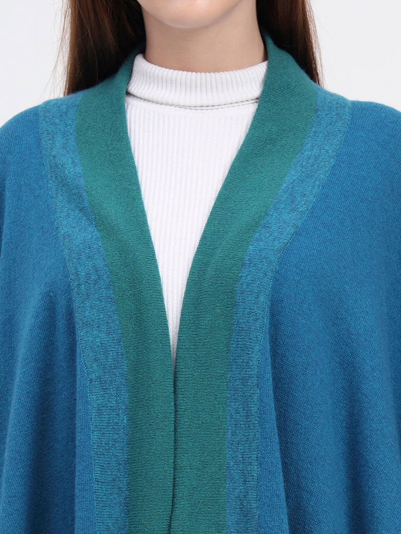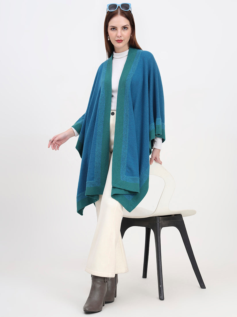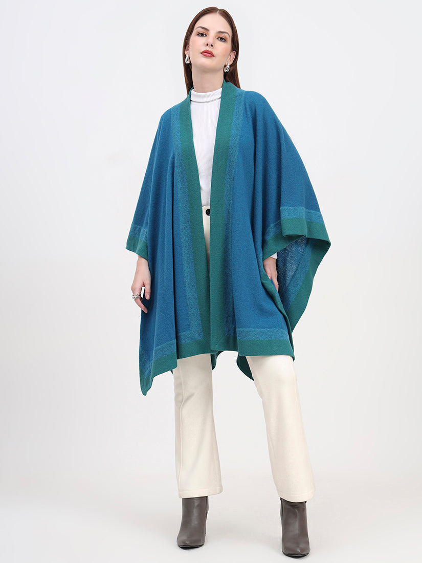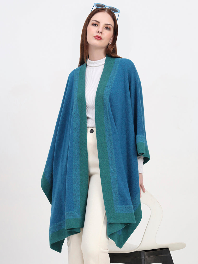 Crafted in pure lambswool, the Azure Crest Cape brings a refreshing turquoise tone accented with deep green borders. Lightweight yet warm, it offers a vibrant take on timeless layering with natural softness and heritage craftsmanship.