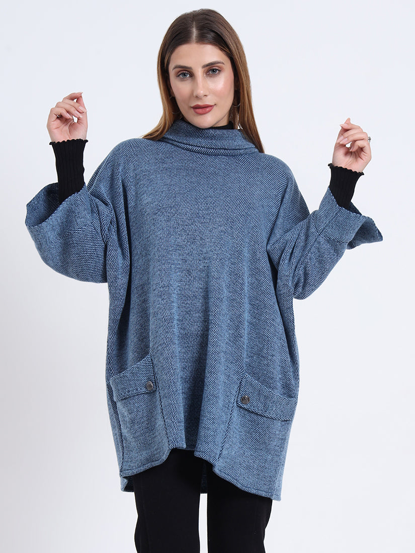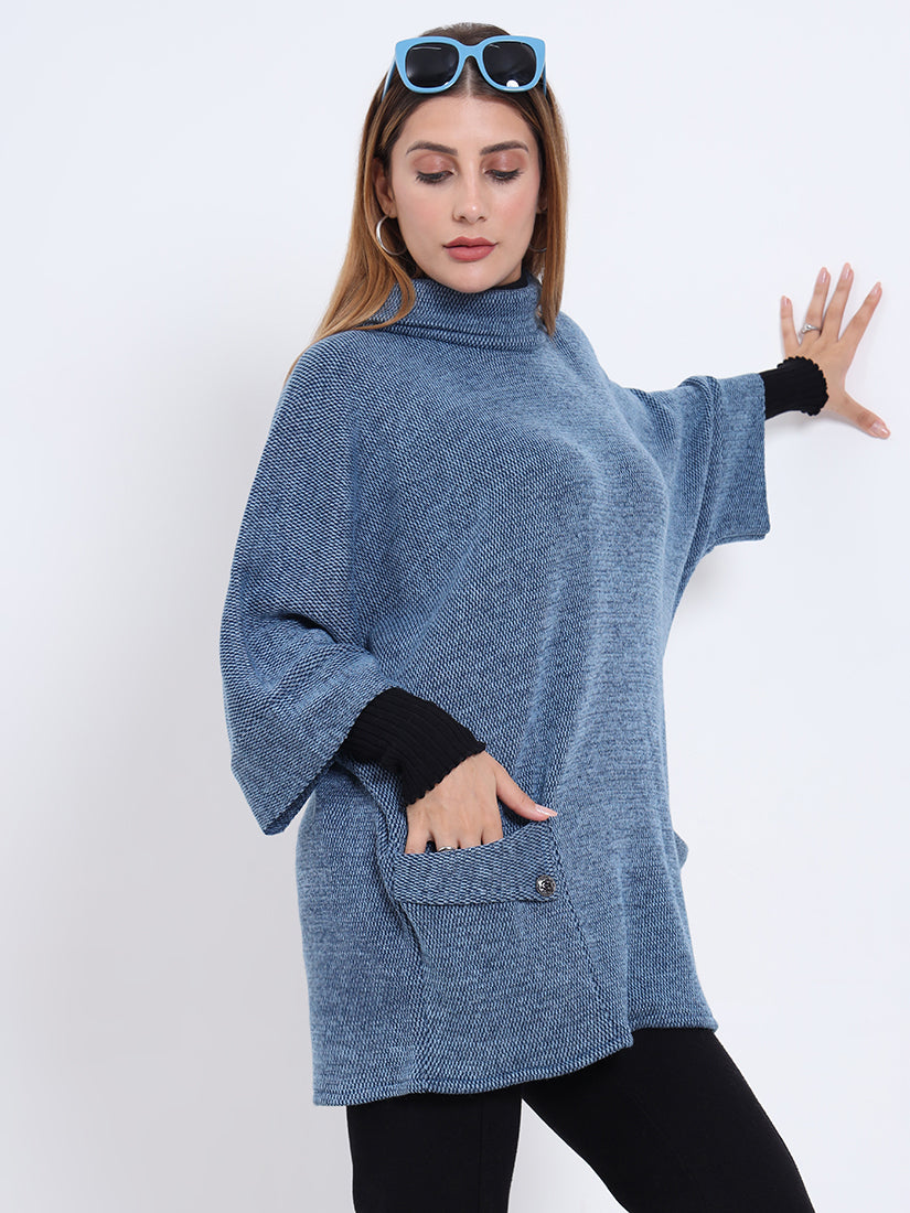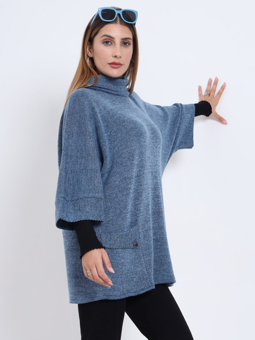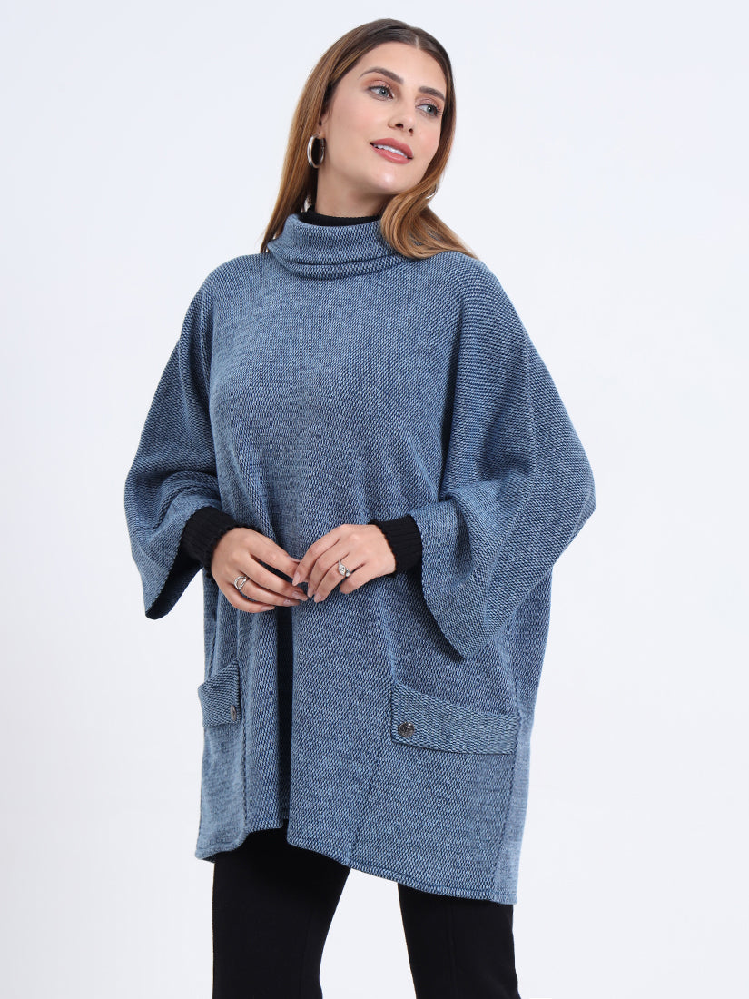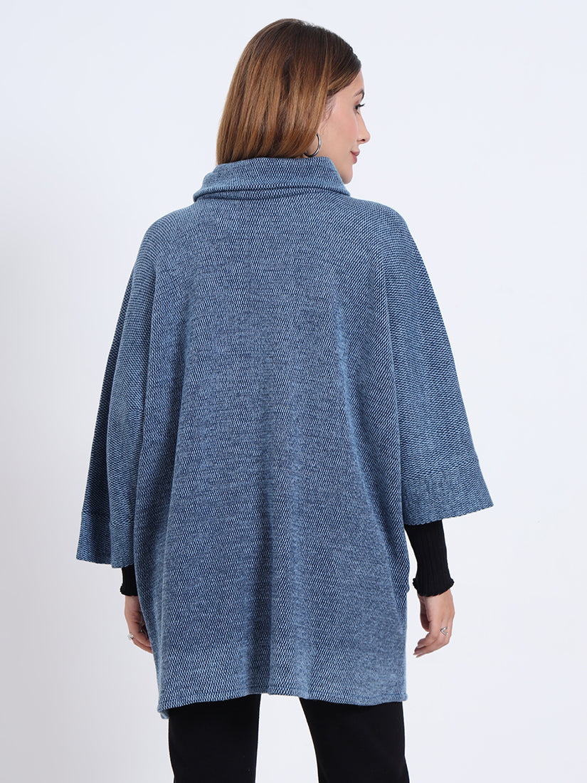 The Azure Drift Poncho flows in cool blue tones with a contemporary cut and practical detailing. A refined layer that fuses casual sophistication with effortless wearability.