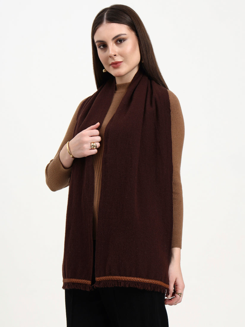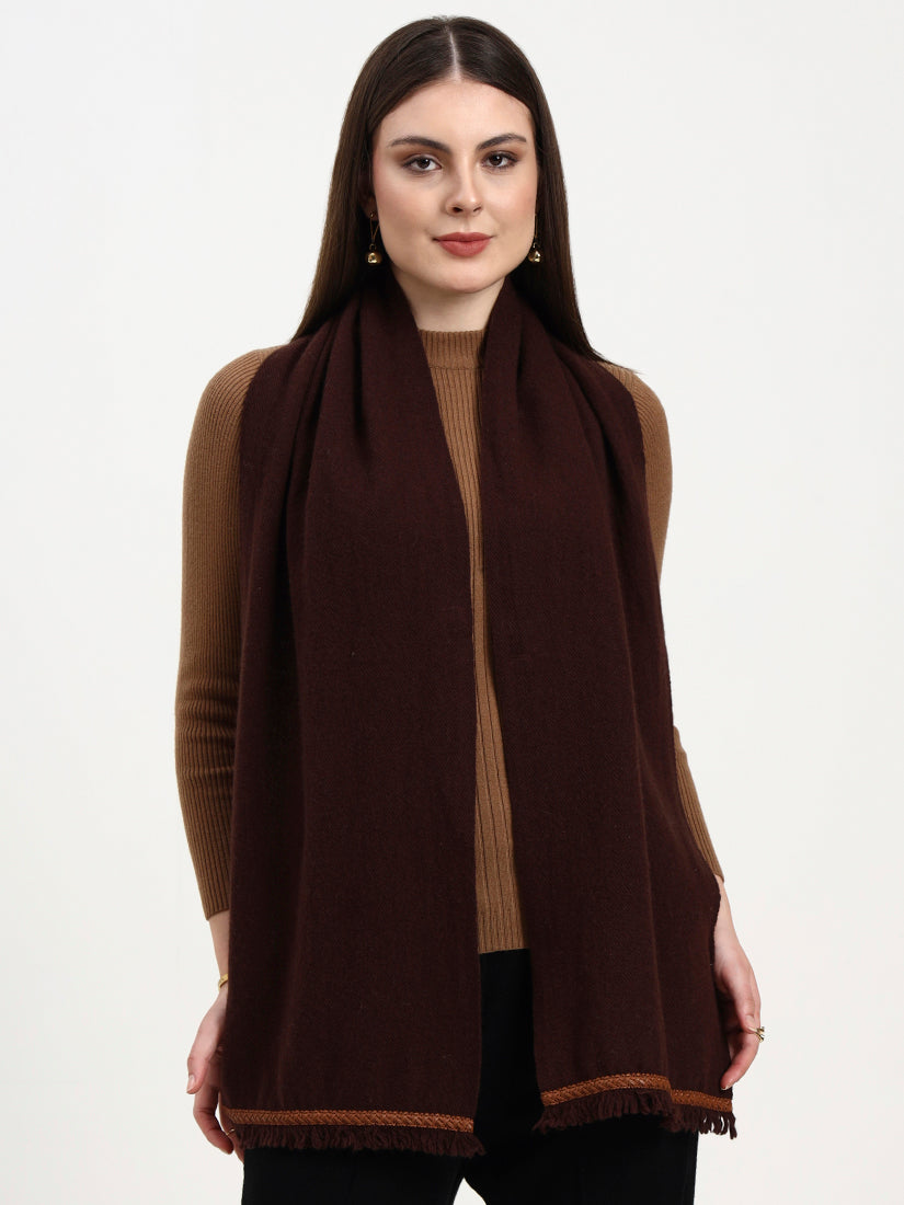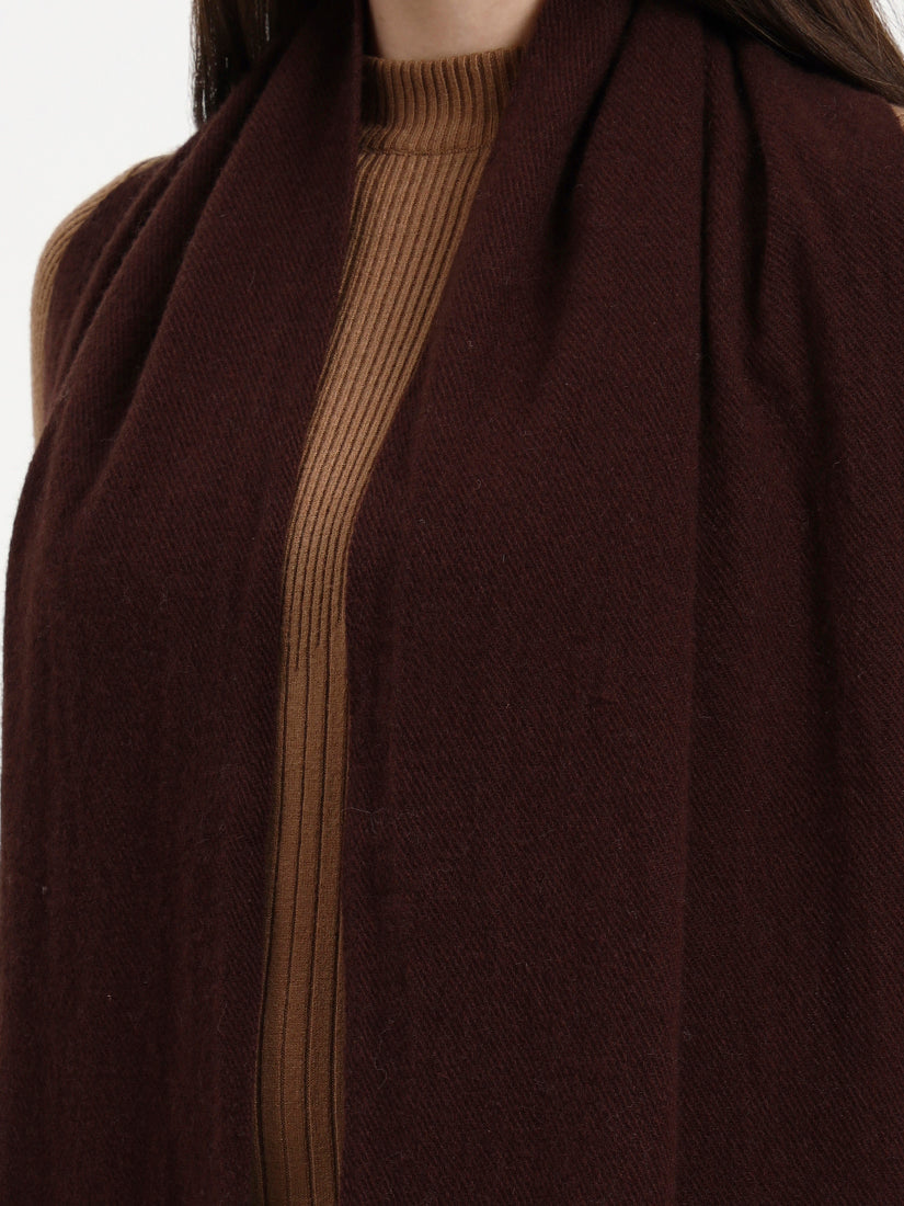 A timeless expression of warmth and refinement, this deep brown scarf is woven in the finest wool, offering both softness and structure. Its rich, earthy tone and subtle edge detailing evoke the quiet elegance of Highland craftsmanship.
