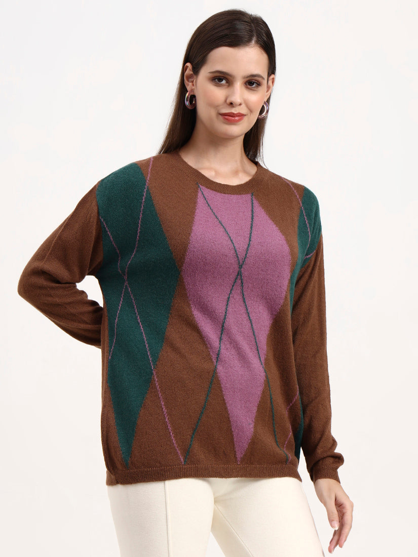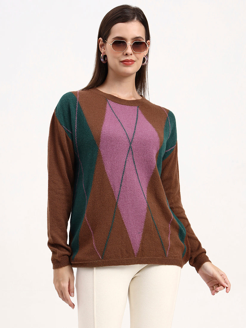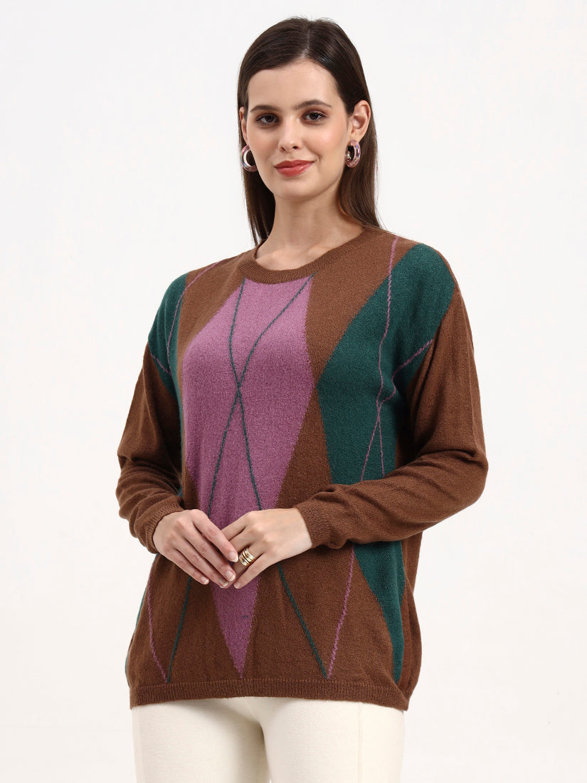 An autumnal copper base highlighted with warm rust, ivory, and subtle brick-red accents. The dynamic diamond motif lends vibrancy while retaining an elegant, heritage-inspired feel — ideal for pairing with both neutrals and deep winter hues.