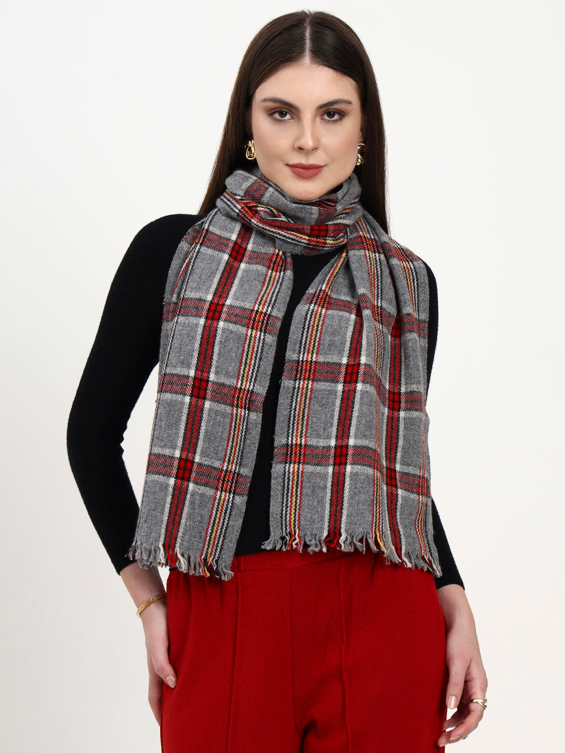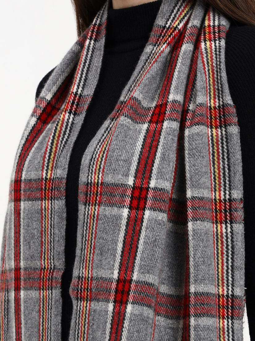 A modern nod to classic Scottish checks, this grey and red scarf brings warmth and character in every fold. Woven in fine wool for exceptional softness, its tartan-inspired pattern celebrates enduring style, versatile, timeless, and undeniably refined.
