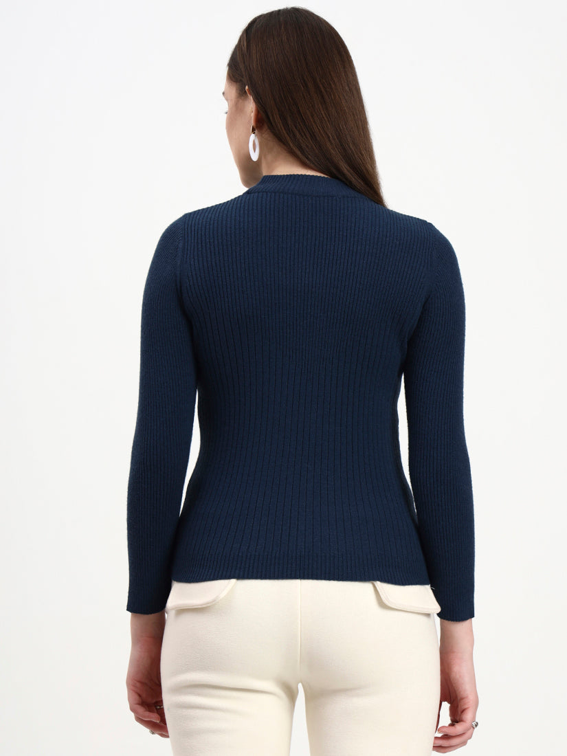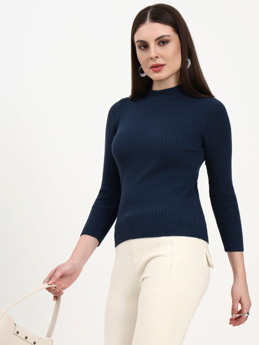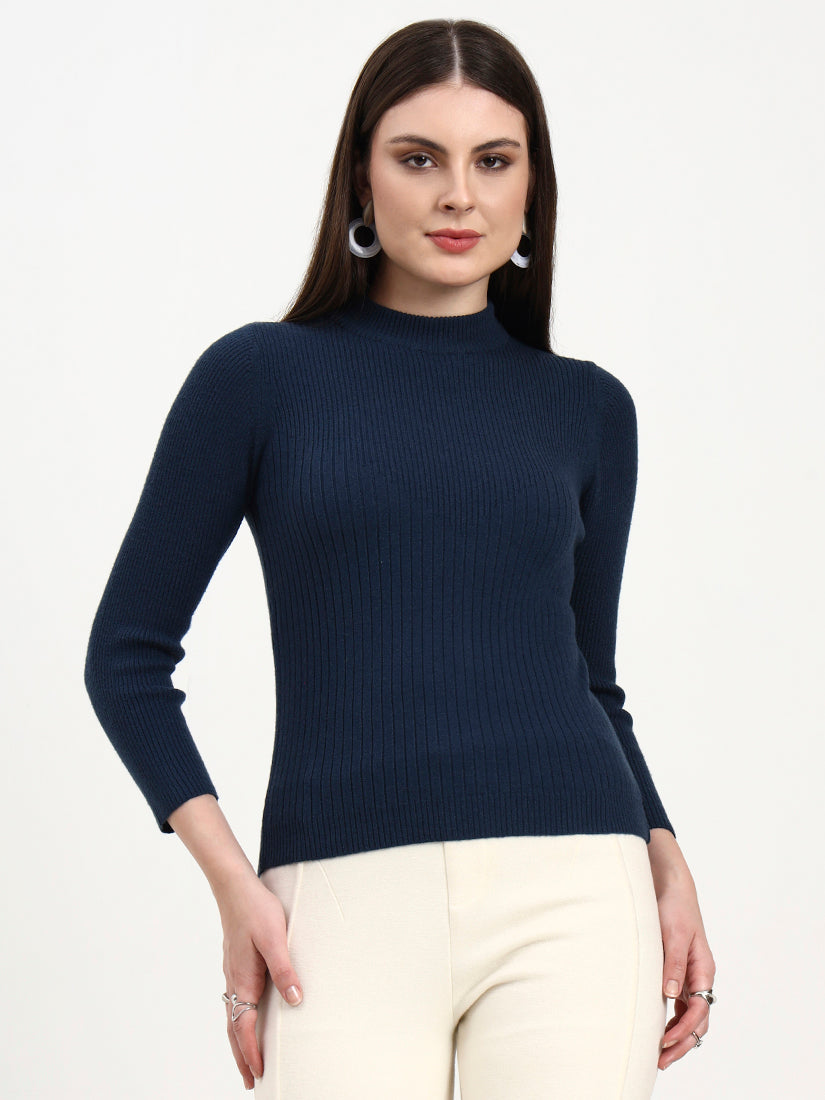 Crafted in a deep navy hue, this fine ribbed knit skivi offers a sleek foundation for refined winter dressing. Its soft wool blend and sculpted fit bring warmth without weight, making it ideal for layering under coats or pairing with tailored separates for an effortlessly elegant silhouette.