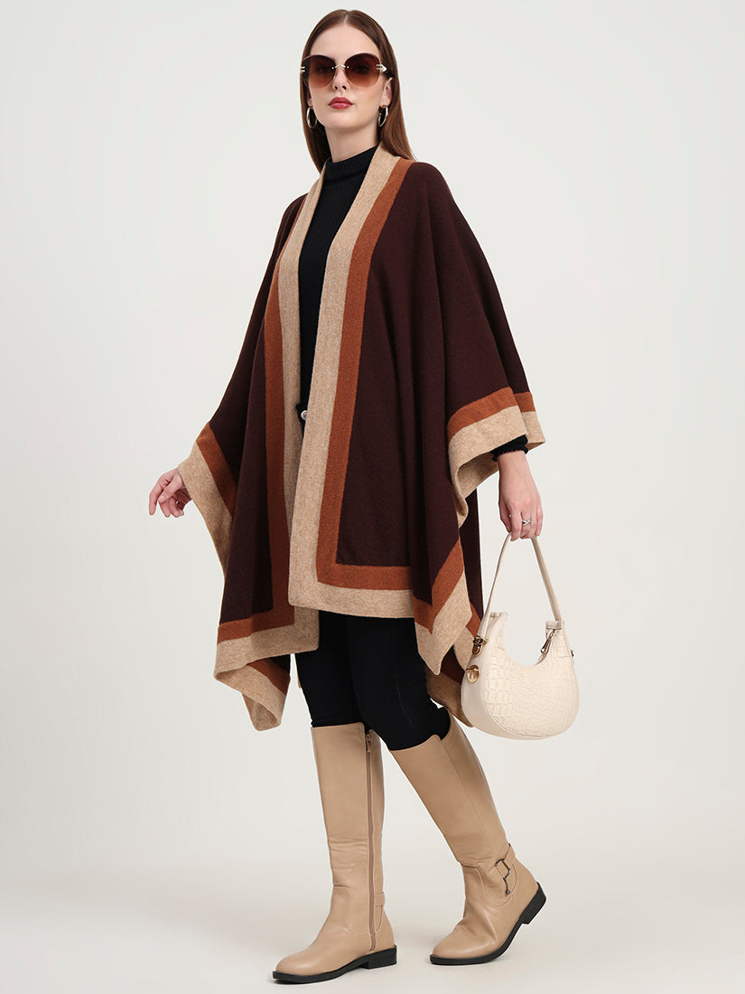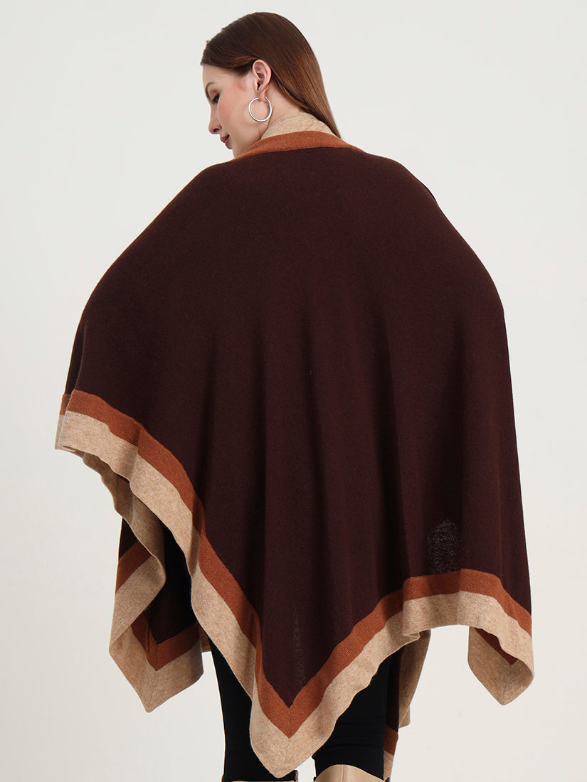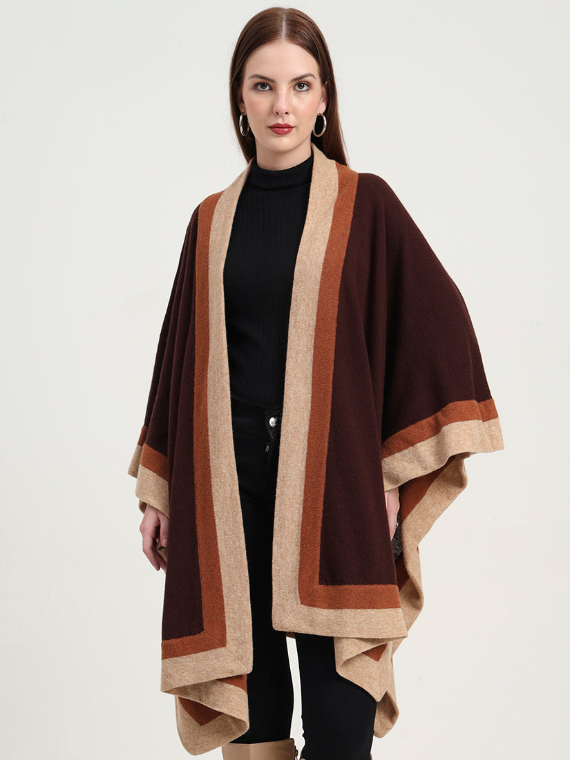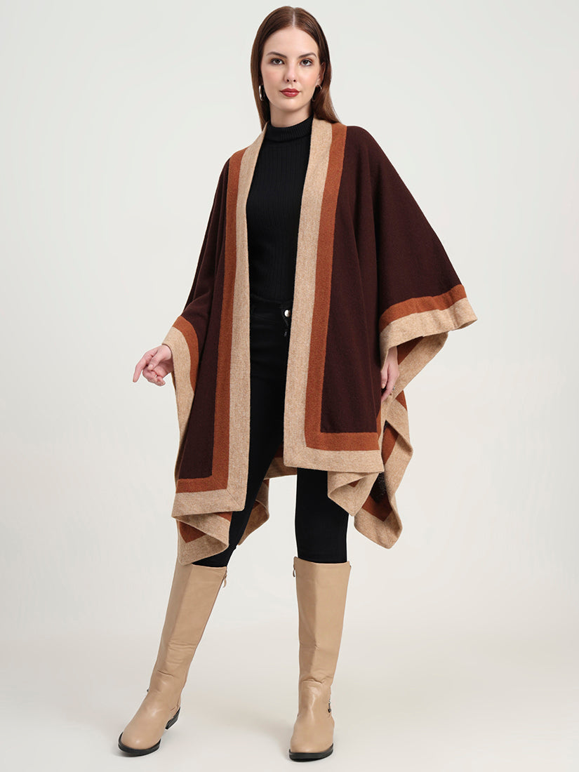 Woven from soft lambswool in a rich chocolate hue, the Cocoa Ridge Cape reflects earthy warmth and understated refinement. Designed for effortless draping, it blends rustic charm with modern sophistication.