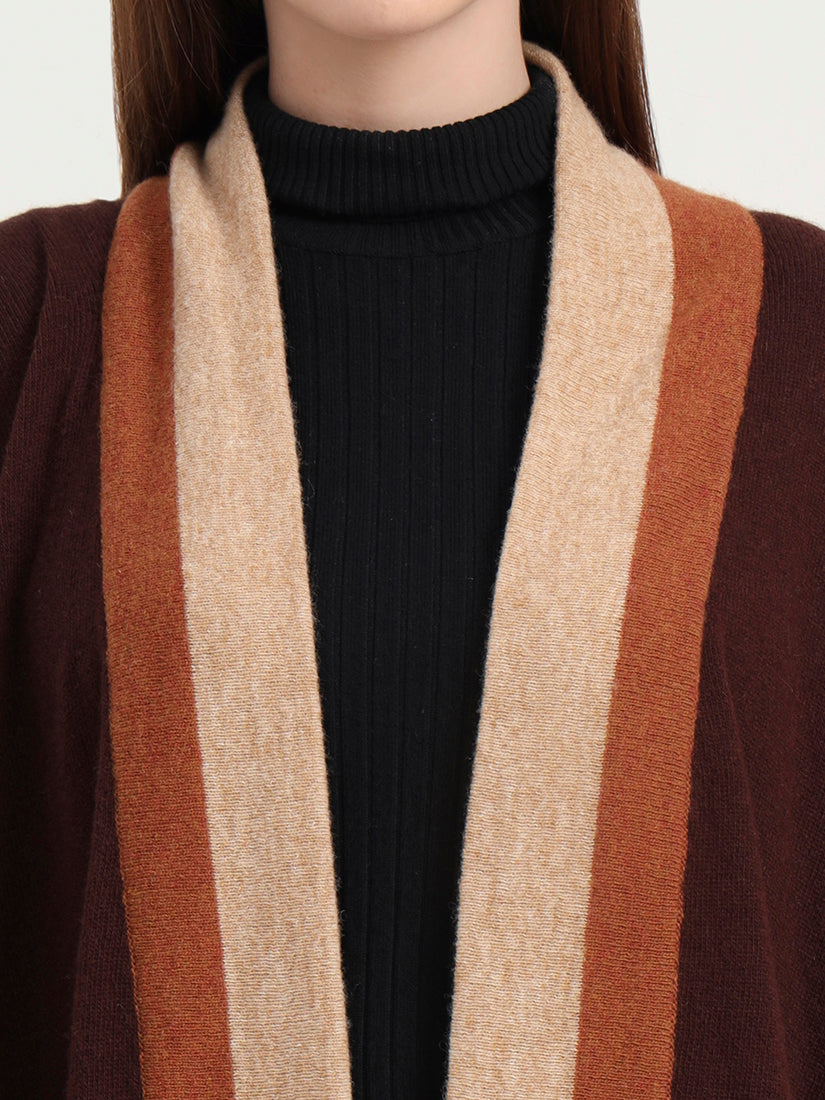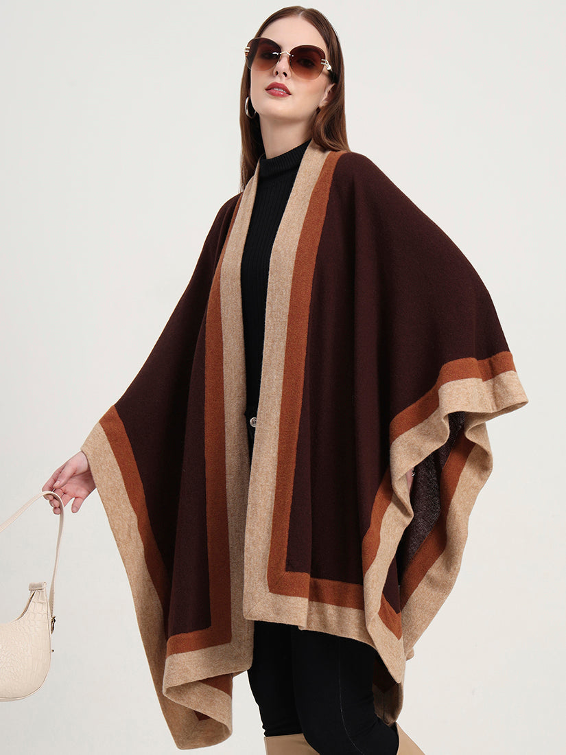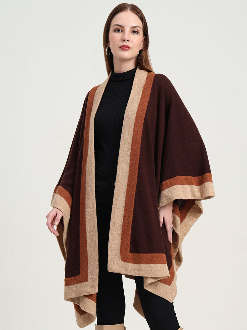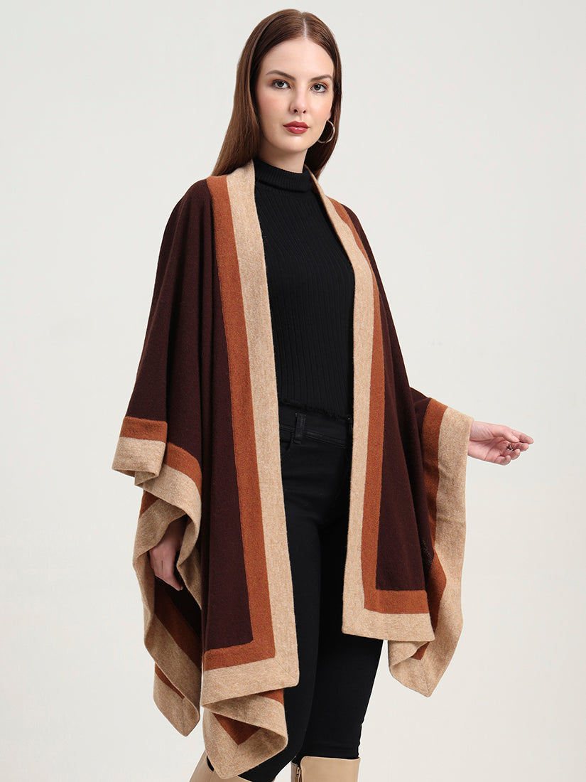 Woven from soft lambswool in a rich chocolate hue, the Cocoa Ridge Cape reflects earthy warmth and understated refinement. Designed for effortless draping, it blends rustic charm with modern sophistication.