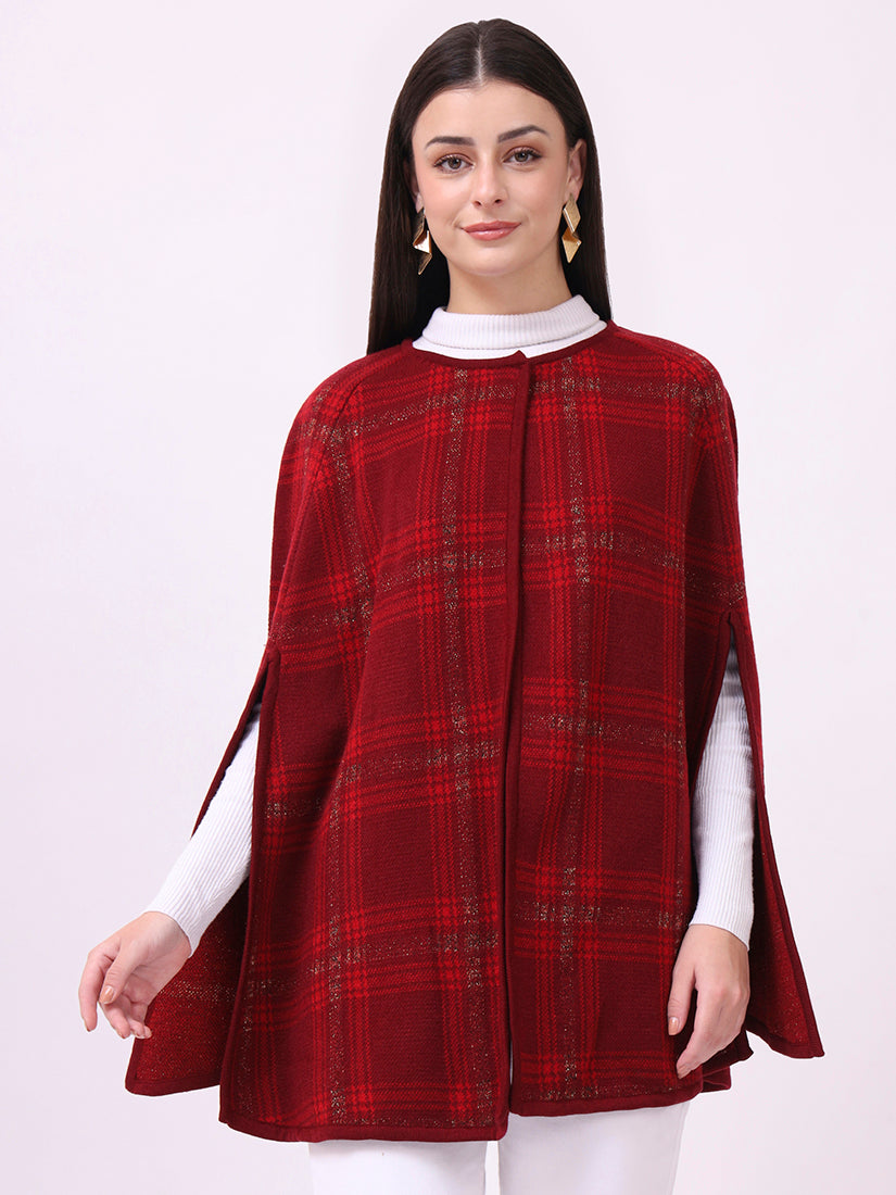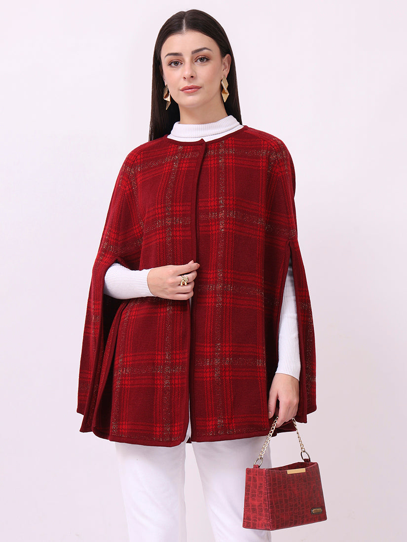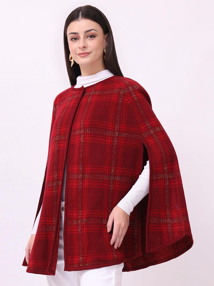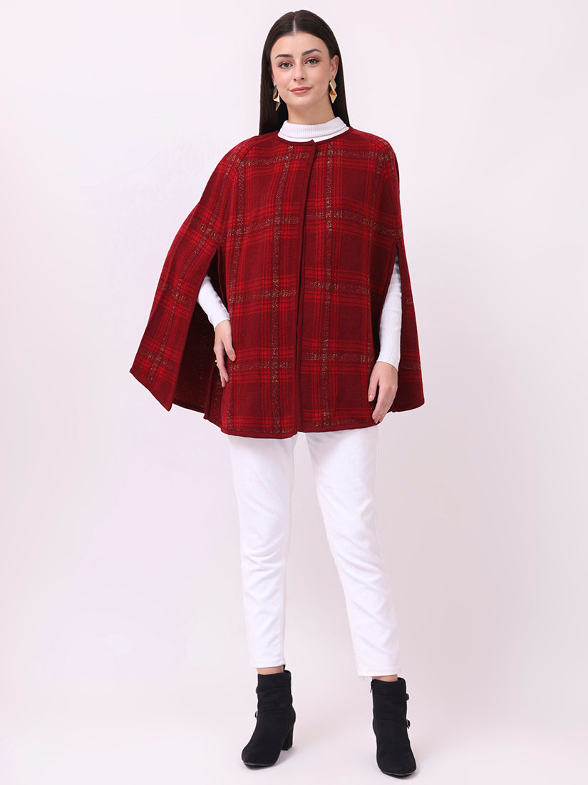 Rich red with checked detailing offers striking sophistication, ideal for festive or statement wear.