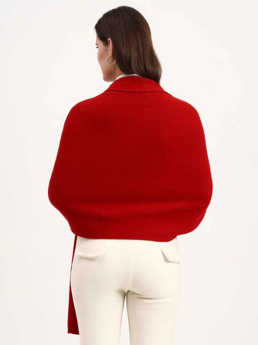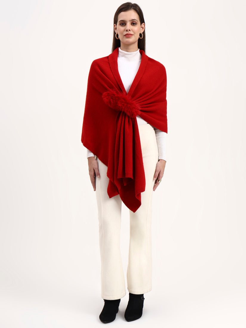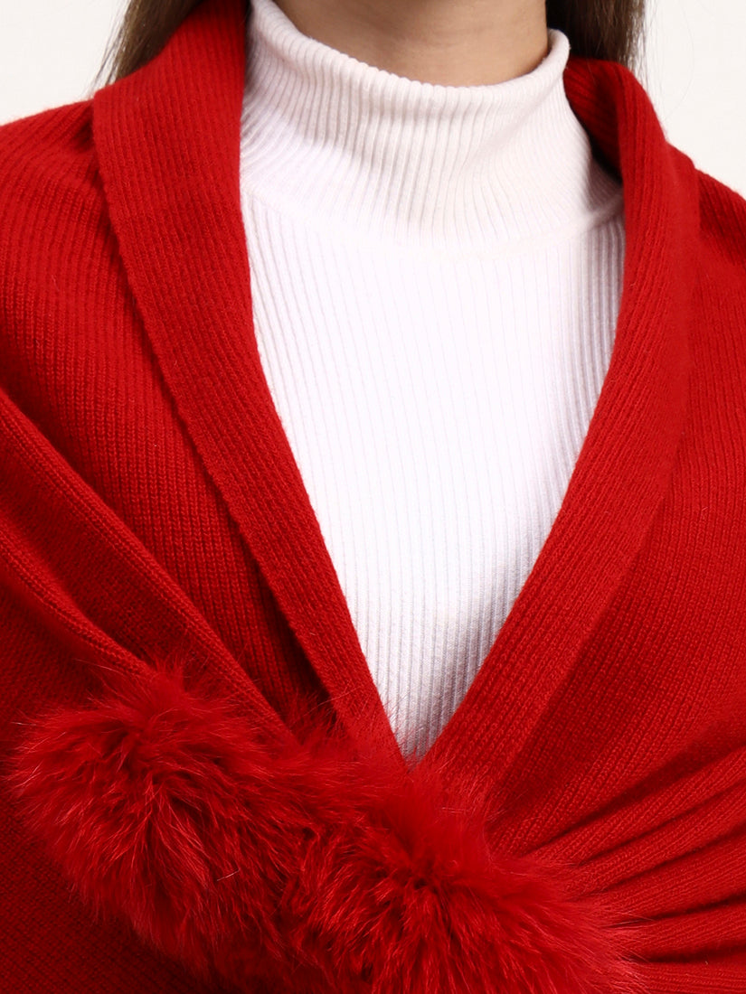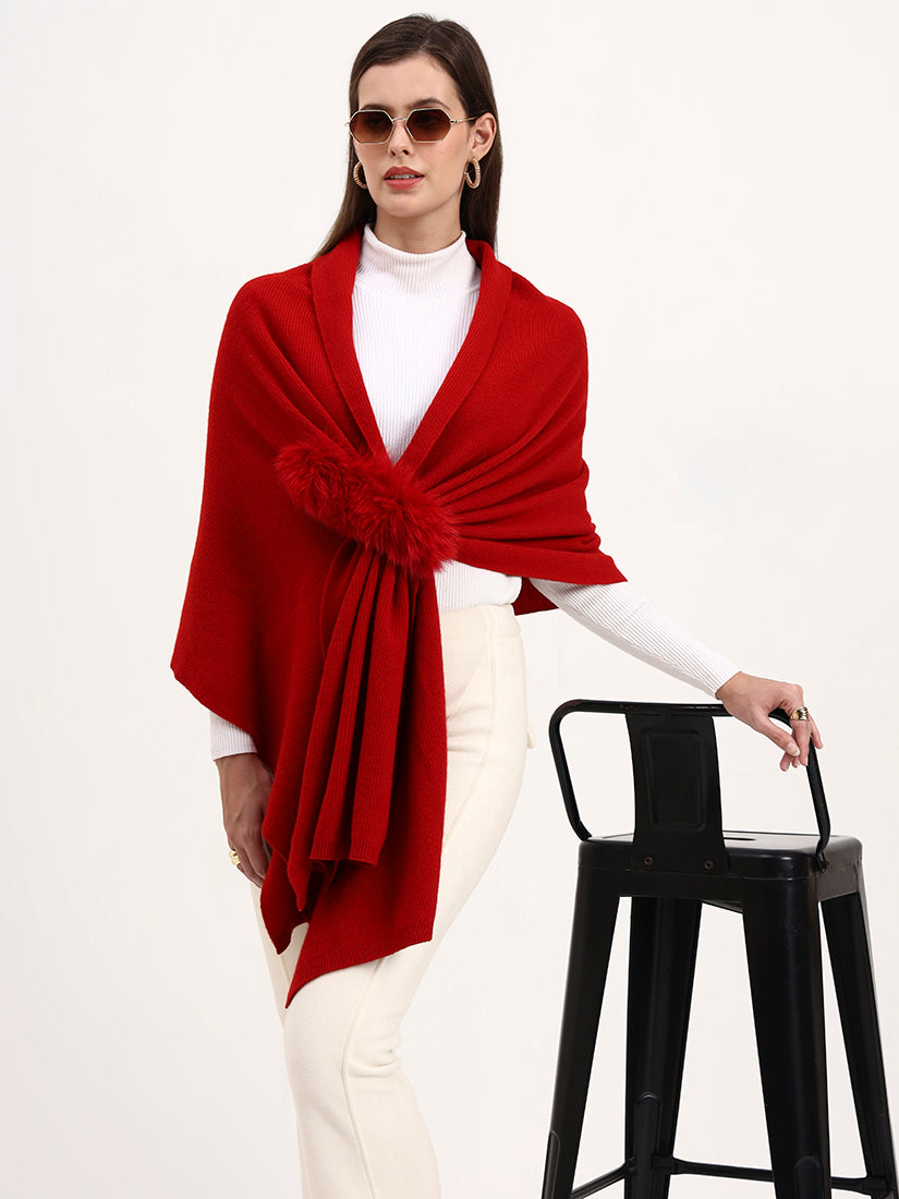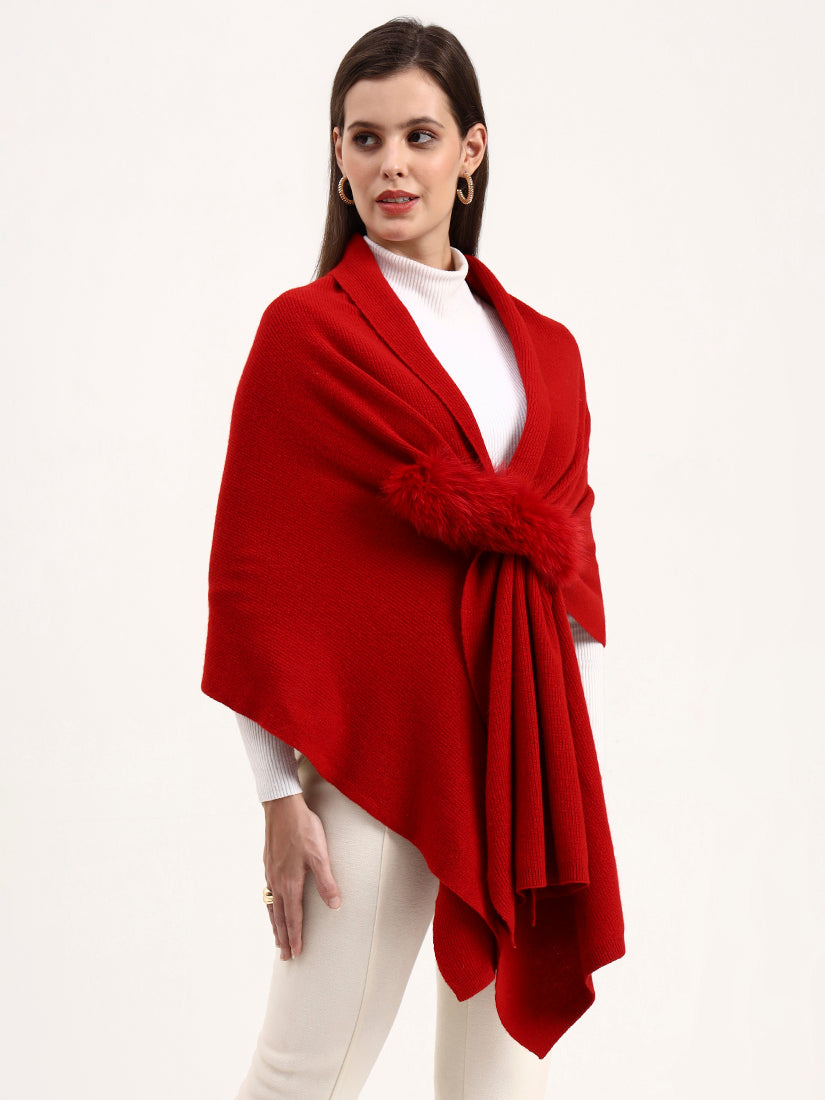 A deep, sophisticated red elevated with a plush tonal fur accent, perfect for layering through winter evenings or festive gatherings. Its fluid drape and subtle sheen create an air of quiet luxury, while the soft handfeel keeps warmth light yet indulgent.