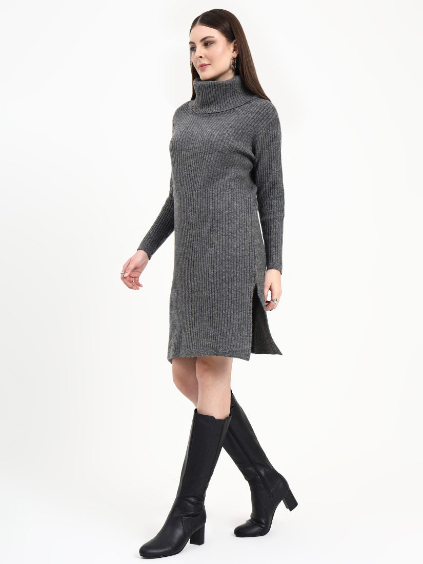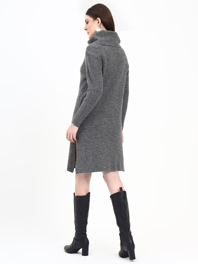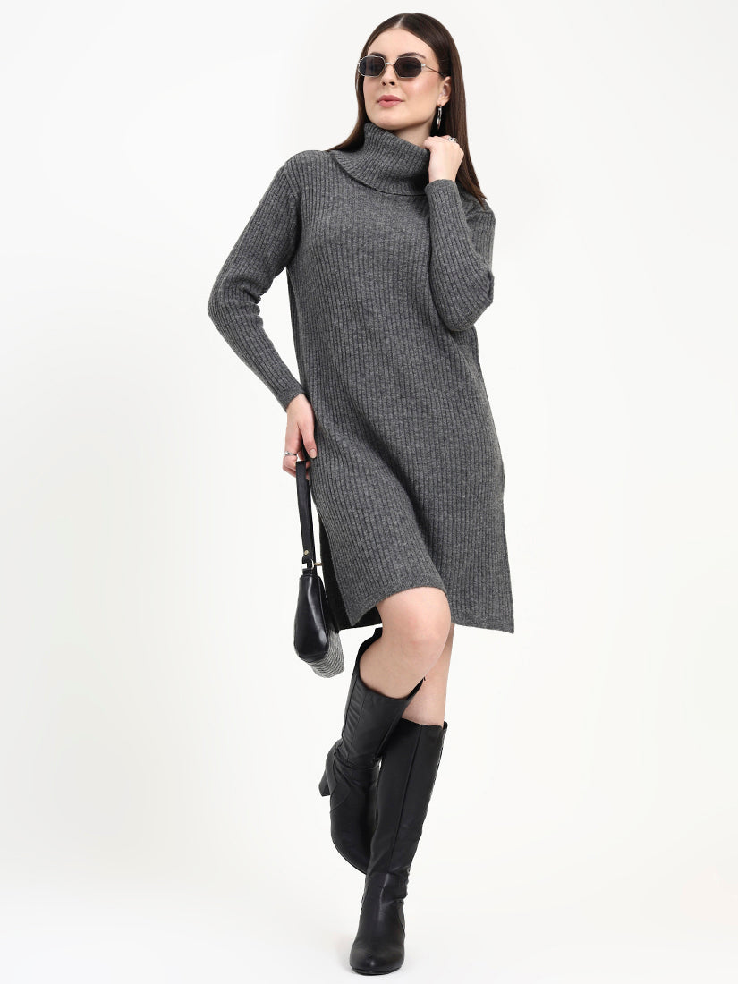 Soft and refined, the Turtleneck Knit Dress captures the essence of effortless elegance. Its ribbed detailing and calm grey tone make it ideal for both relaxed and elevated moments through the season.