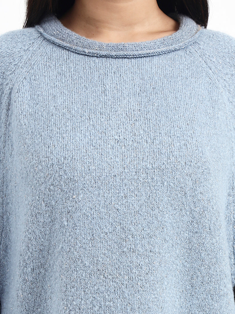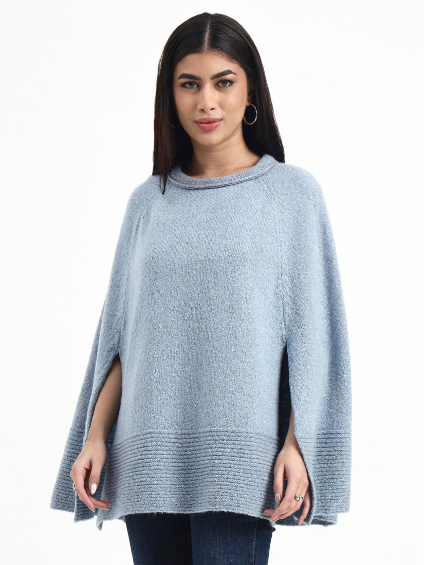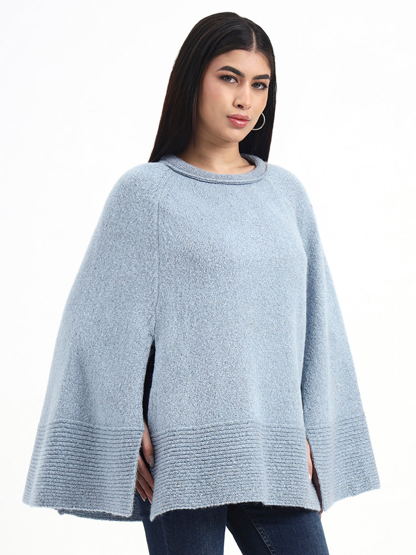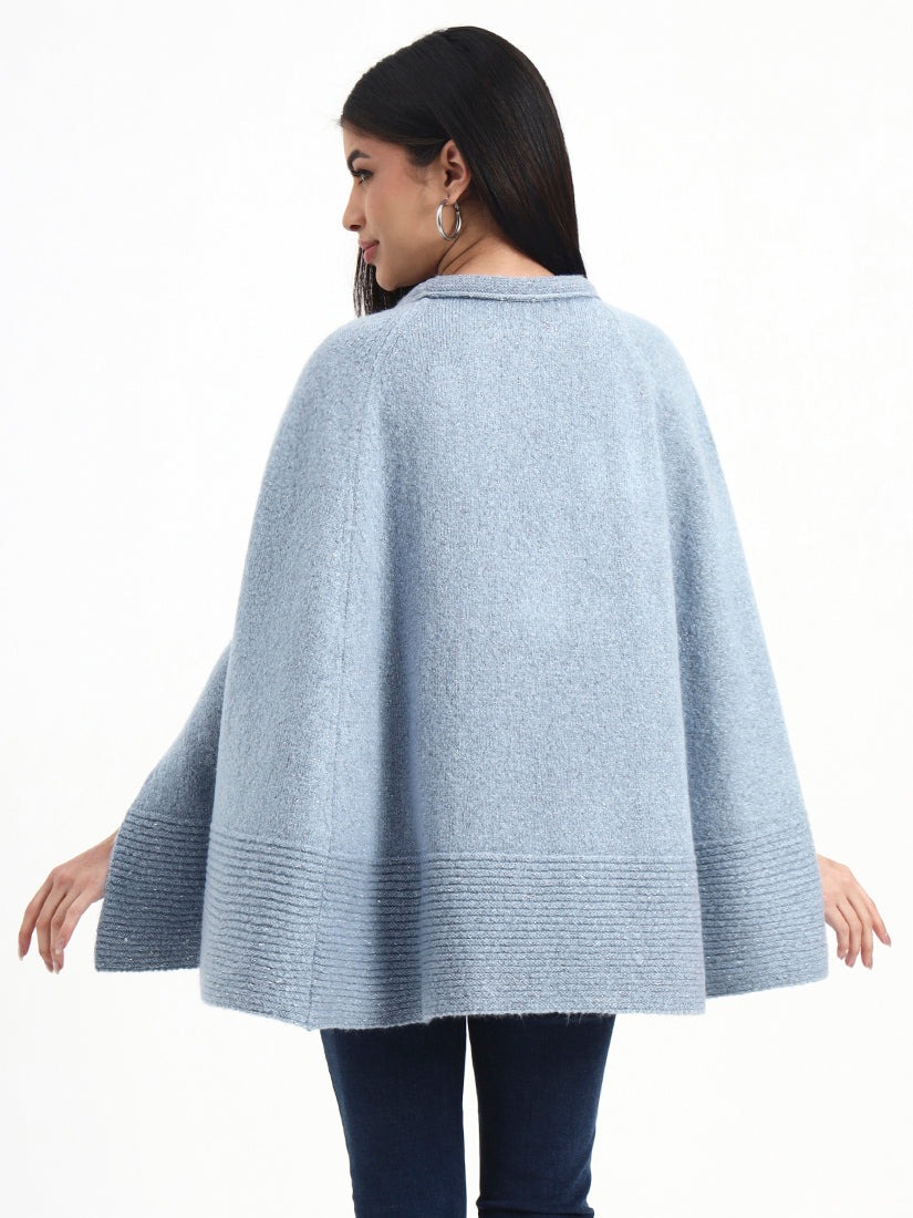 This felted knit poncho is finished in a washed blue tone with a calm, understated depth. The felted surface lends warmth and durability without weight, while the relaxed silhouette ensures effortless layering through the colder months.