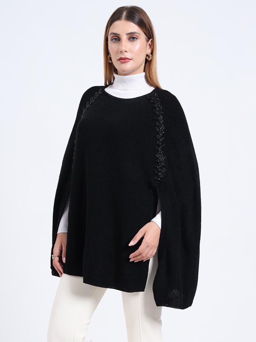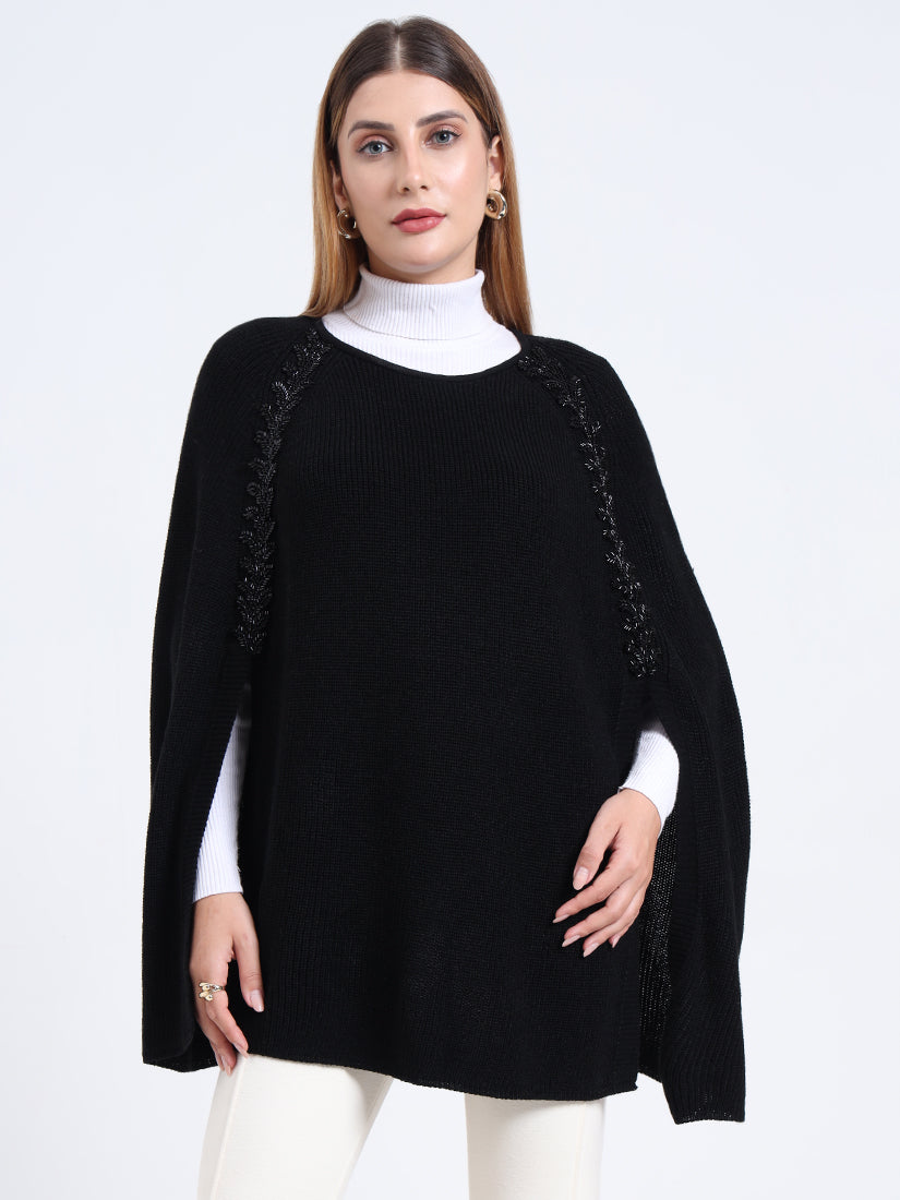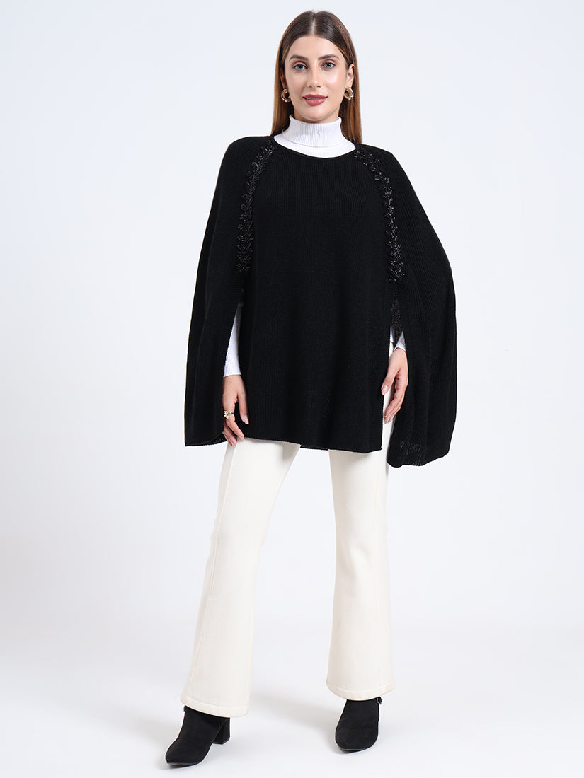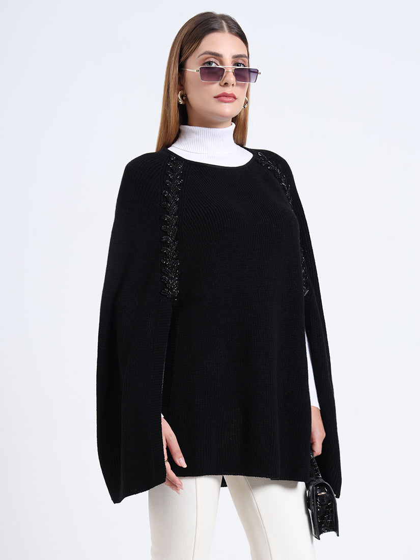 Refined in deep black, the Eclipse Laurel Cape features artistic shoulder accents that add a touch of craftsmanship. Its minimalist form is elevated with thoughtful detail and timeless poise.