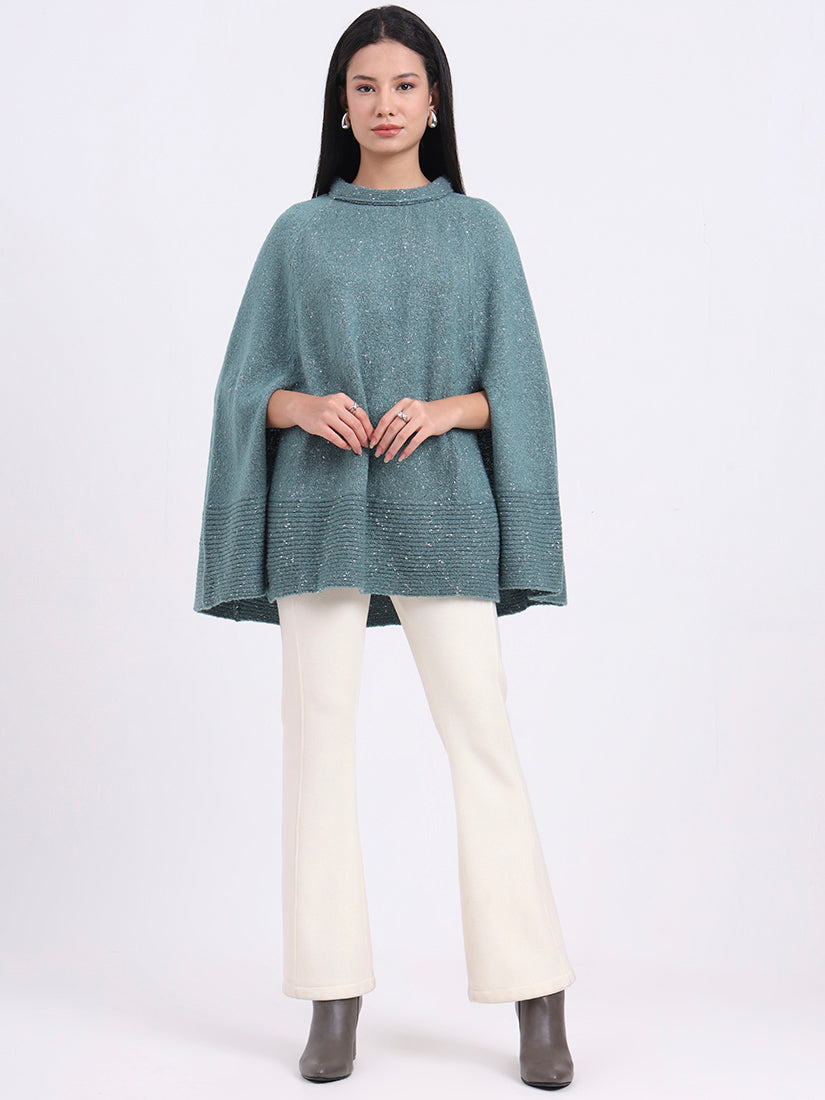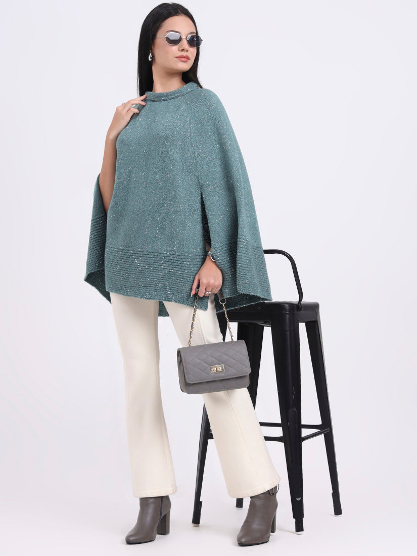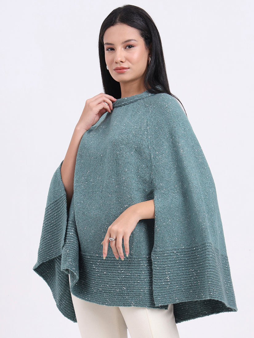 Inspired by nature, the Evergreen Glow Poncho pairs a rich green base with luminous sparkle accents, creating a polished look that’s both timeless and radiant.