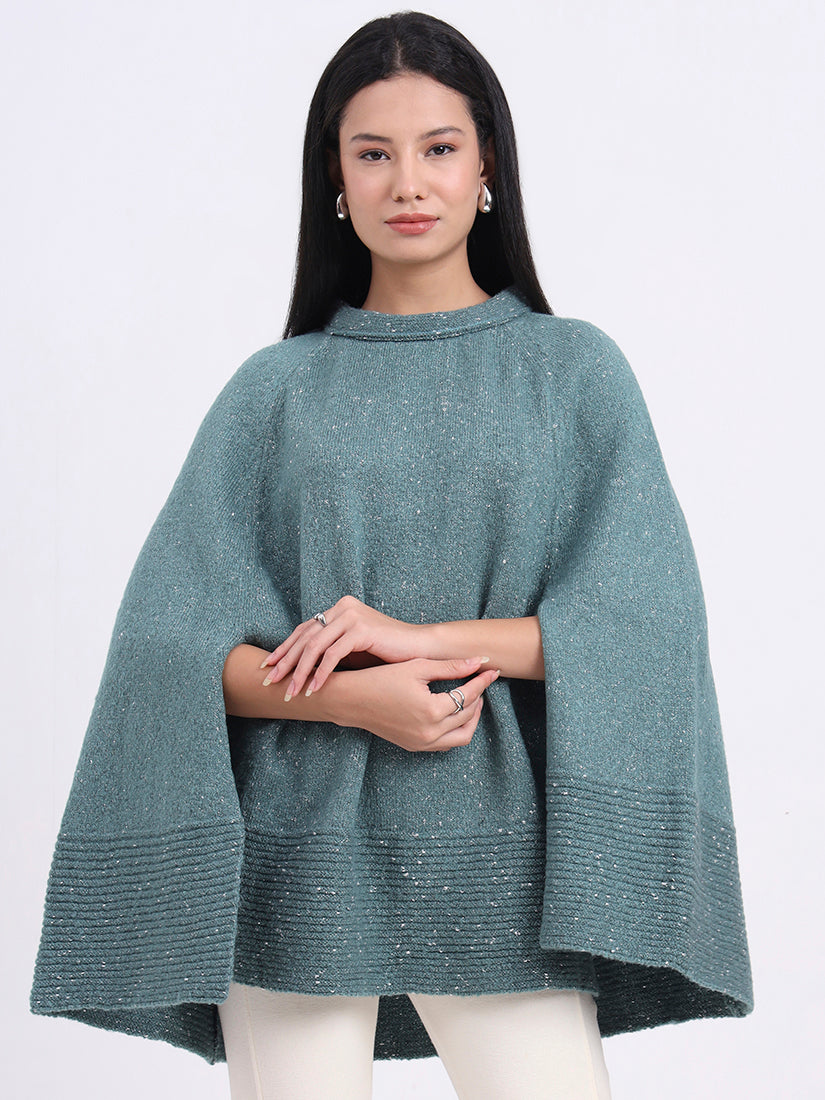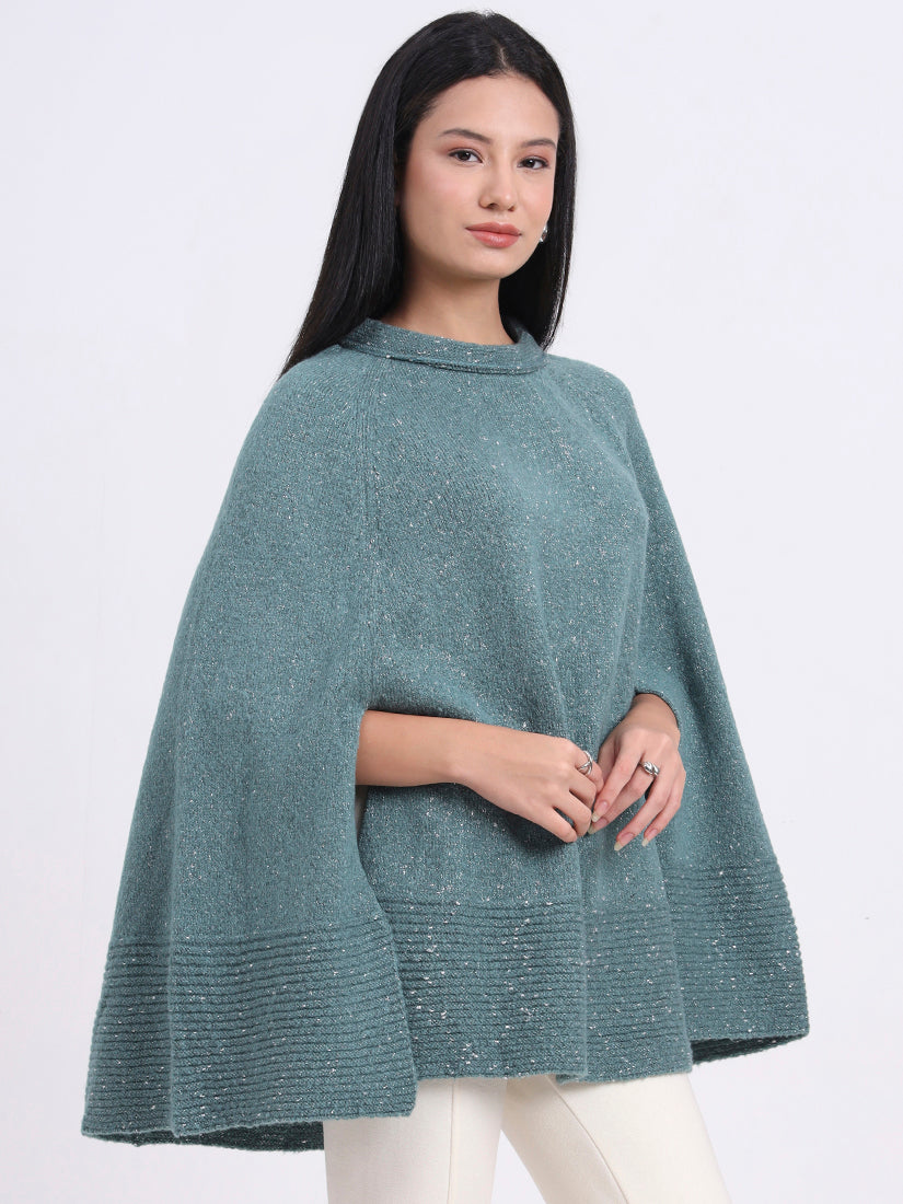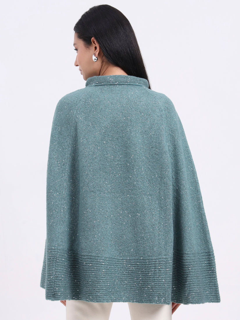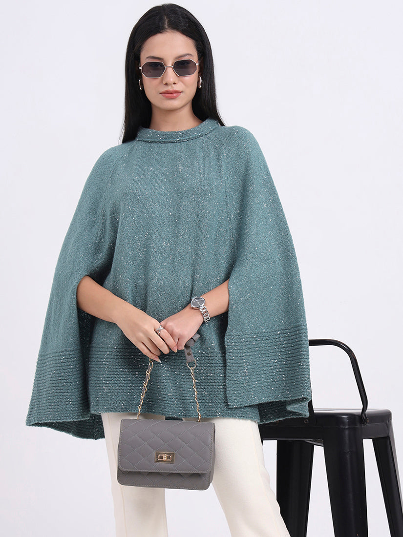 Inspired by nature, the Evergreen Glow Poncho pairs a rich green base with luminous sparkle accents, creating a polished look that’s both timeless and radiant.