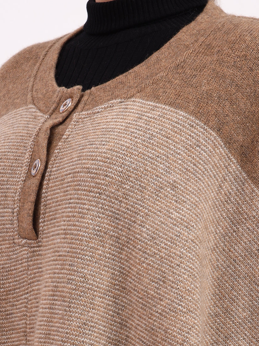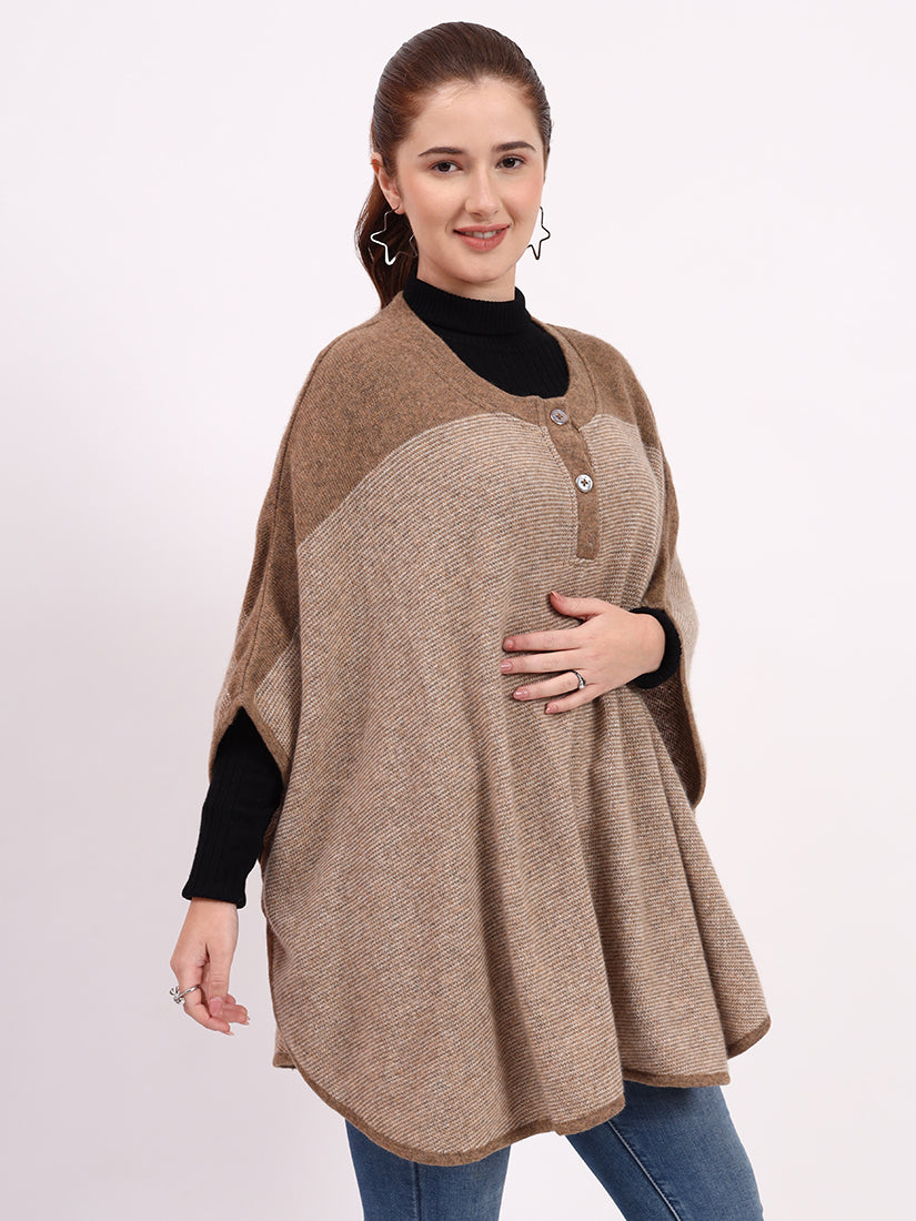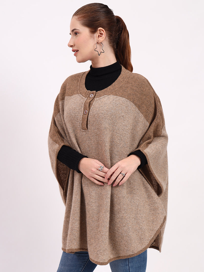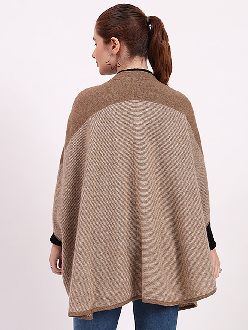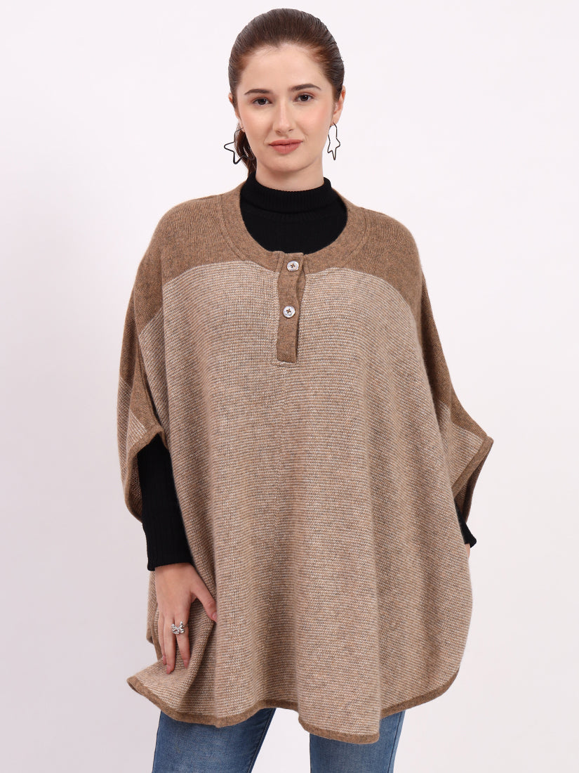 Light beige hues highlight the dual-tone design, creating a poncho of refined softness and enduring sophistication.
