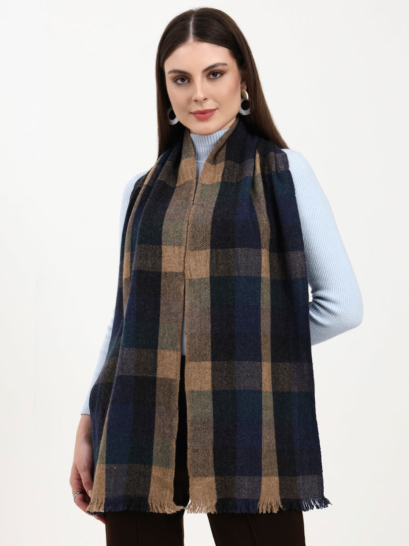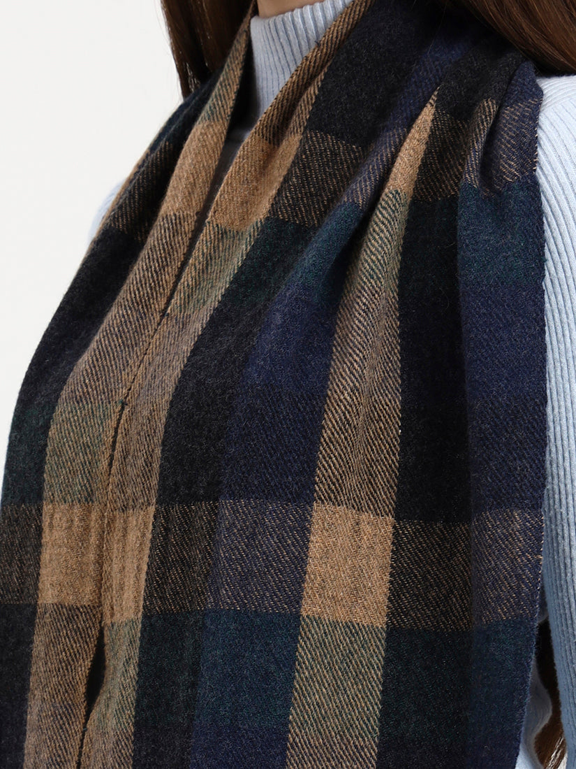 A timeless piece inspired by Highland tartans, this blue and beige checked wool scarf brings warmth and quiet refinement. The soft texture and generous drape make it a versatile accent for winter layering, from countryside escapes to city strolls.