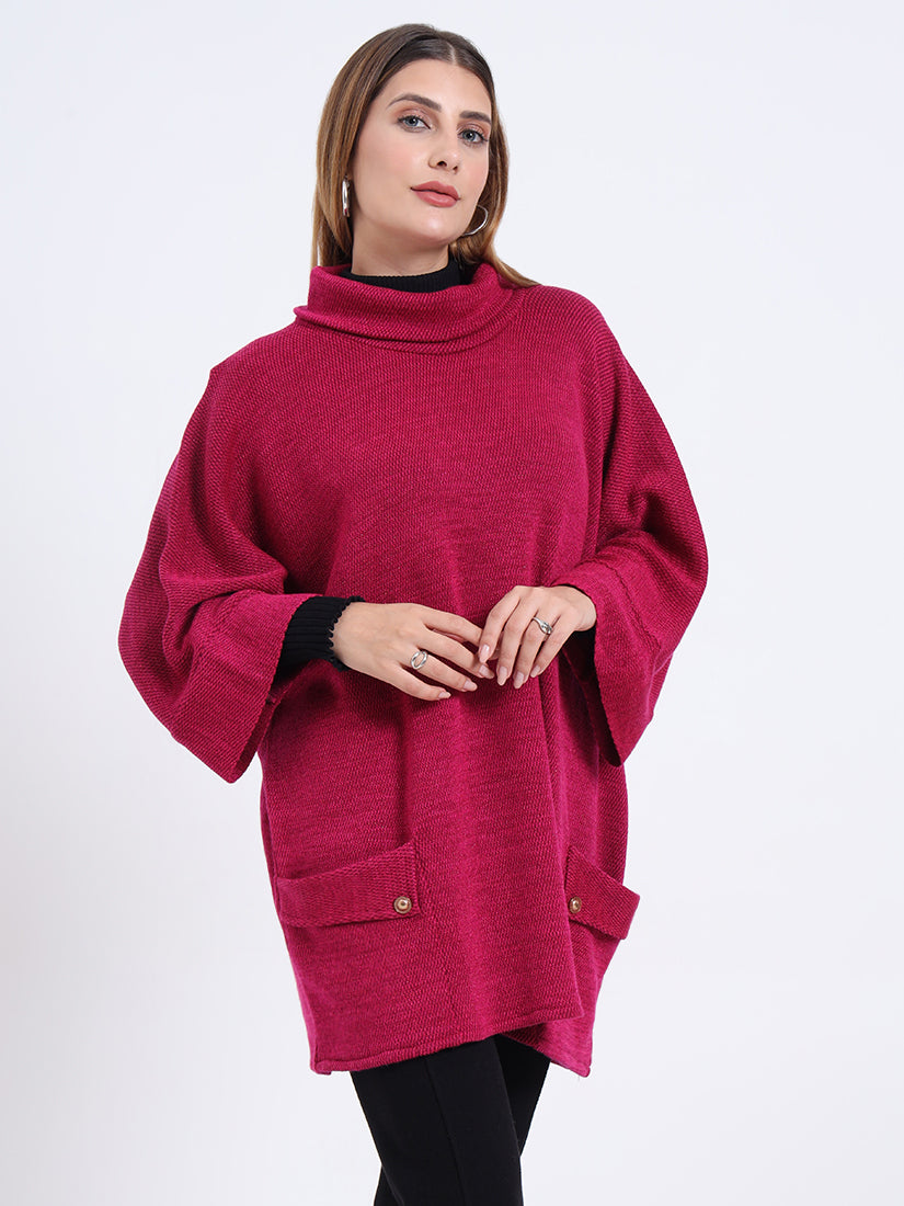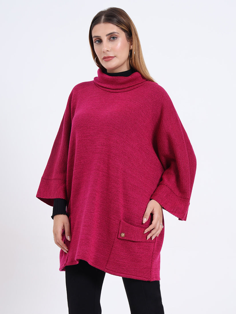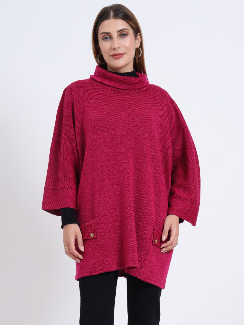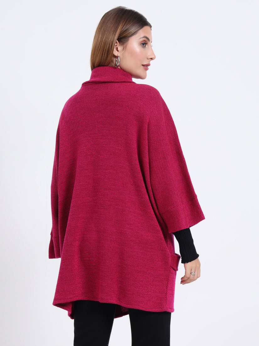 Bold and expressive, the Fuchsia Crest Poncho in vibrant pink makes a confident style statement. Its chic pockets and fluid drape bring a balance of modern edge and timeless ease.