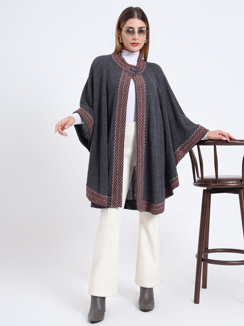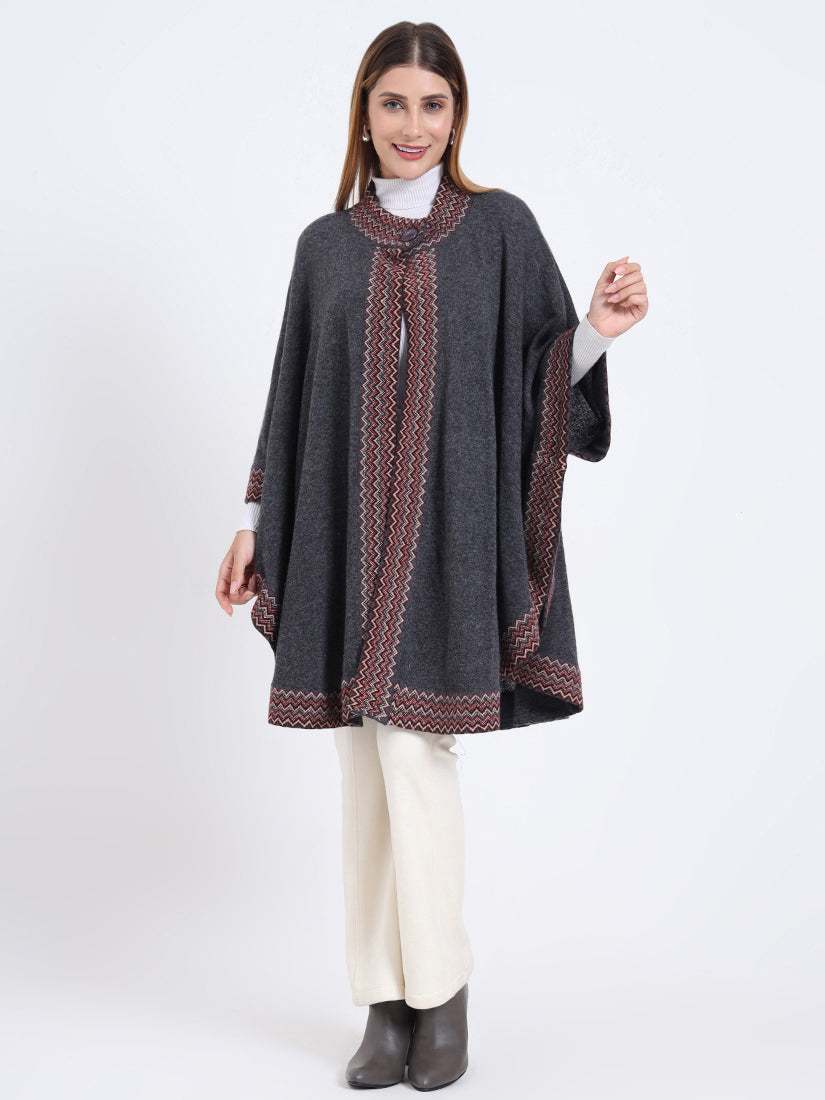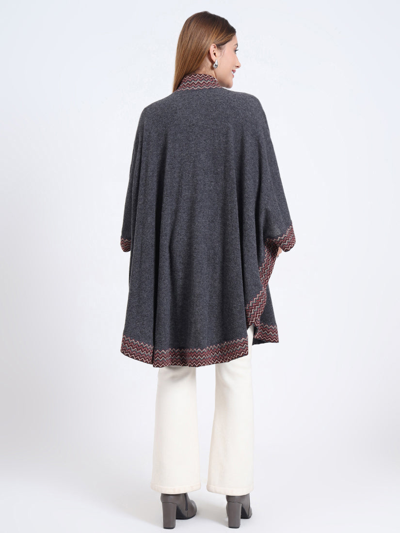 Sophisticated and versatile, the Granite Border Cape in charcoal lambswool is accented with classic border detailing. A luxurious essential designed to endure in both style and comfort.