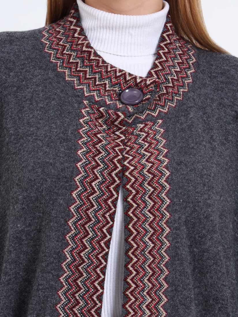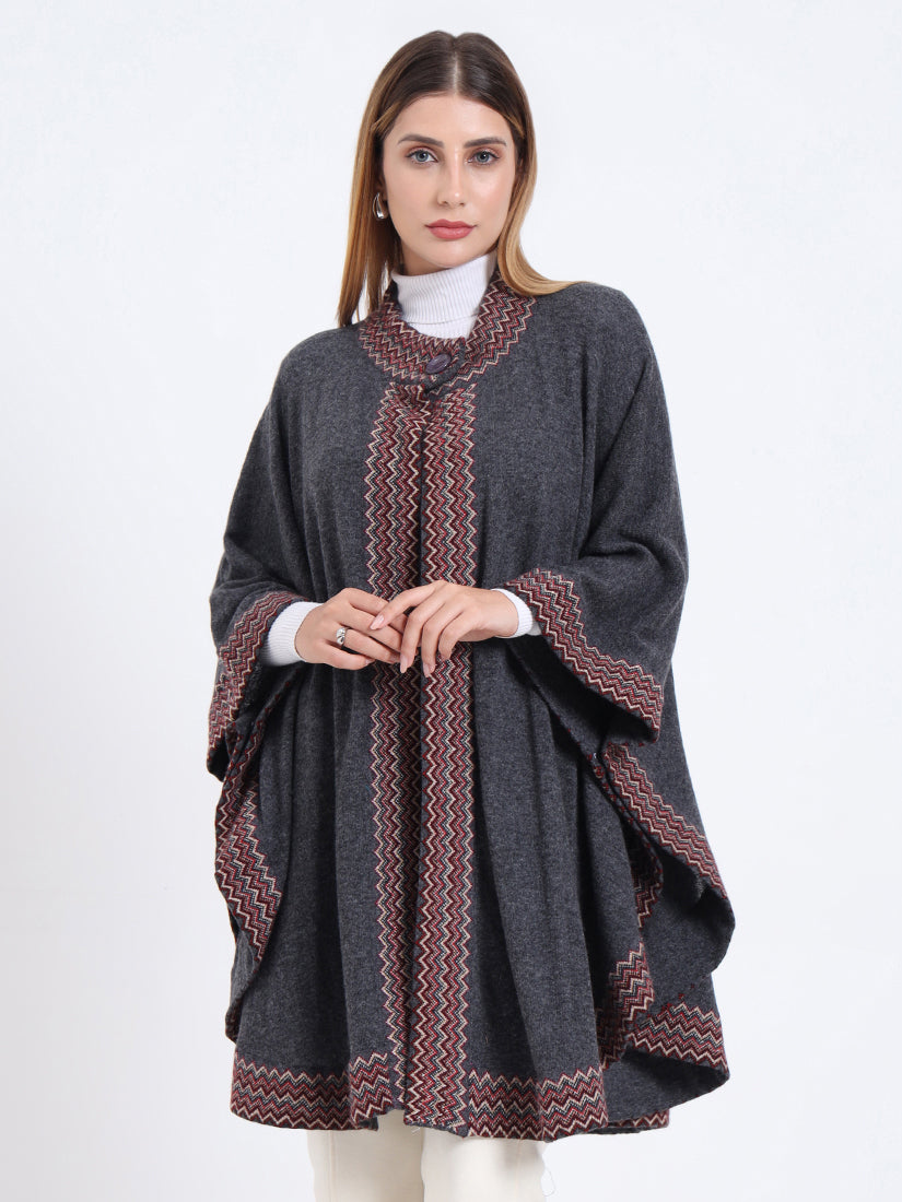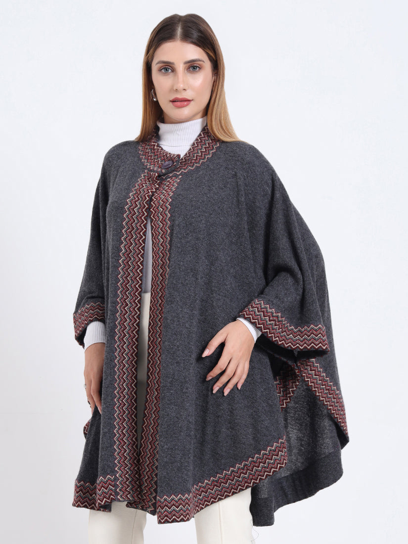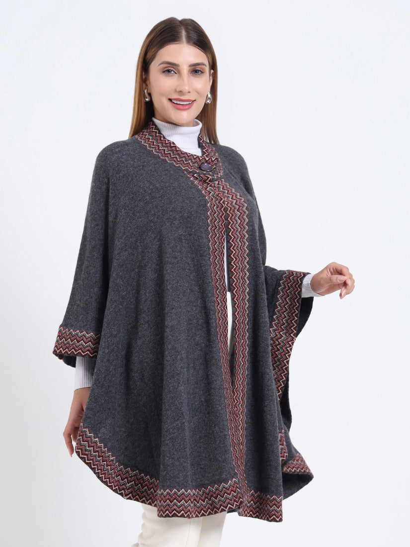 Sophisticated and versatile, the Granite Border Cape in charcoal lambswool is accented with classic border detailing. A luxurious essential designed to endure in both style and comfort.