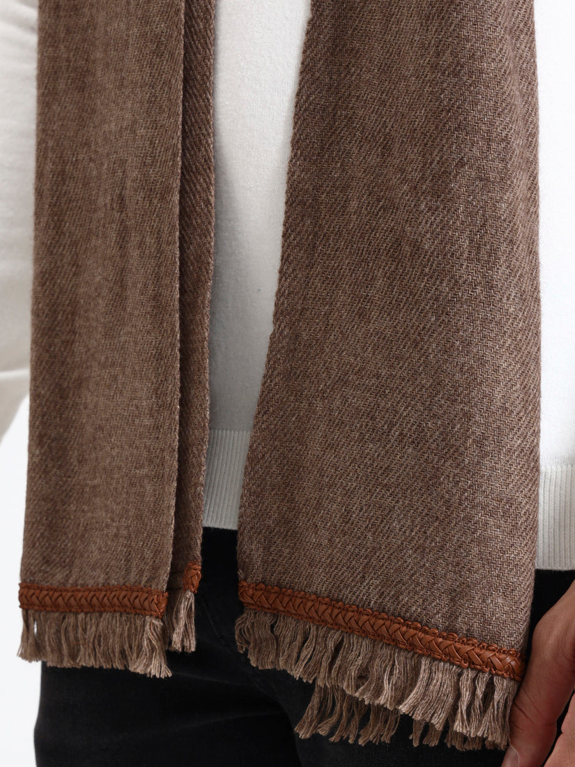 Woven from pure Lambswool, this brown scarf offers a touch of classic Scottish warmth and softness. Finished with delicate fringed edges and warm earthy tones, it’s the perfect accessory for refined winter layering.