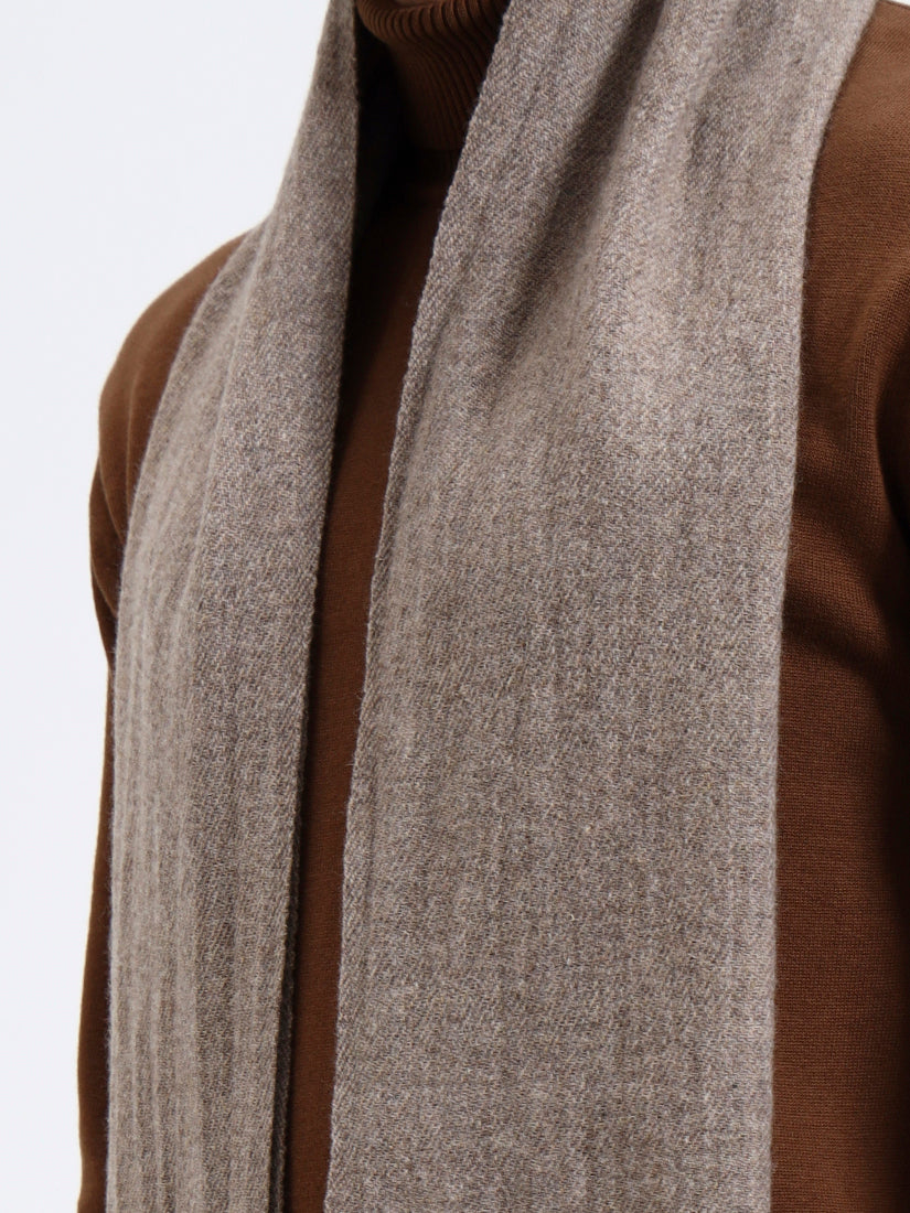 Woven from the finest Lambswool, this taupe scarf blends natural softness with timeless elegance. Its understated tone and subtle fringe detailing evoke the quiet charm of the Scottish highlands, while the lightweight warmth makes it an essential layer for winter days.