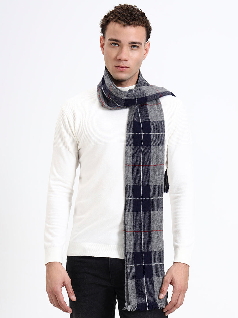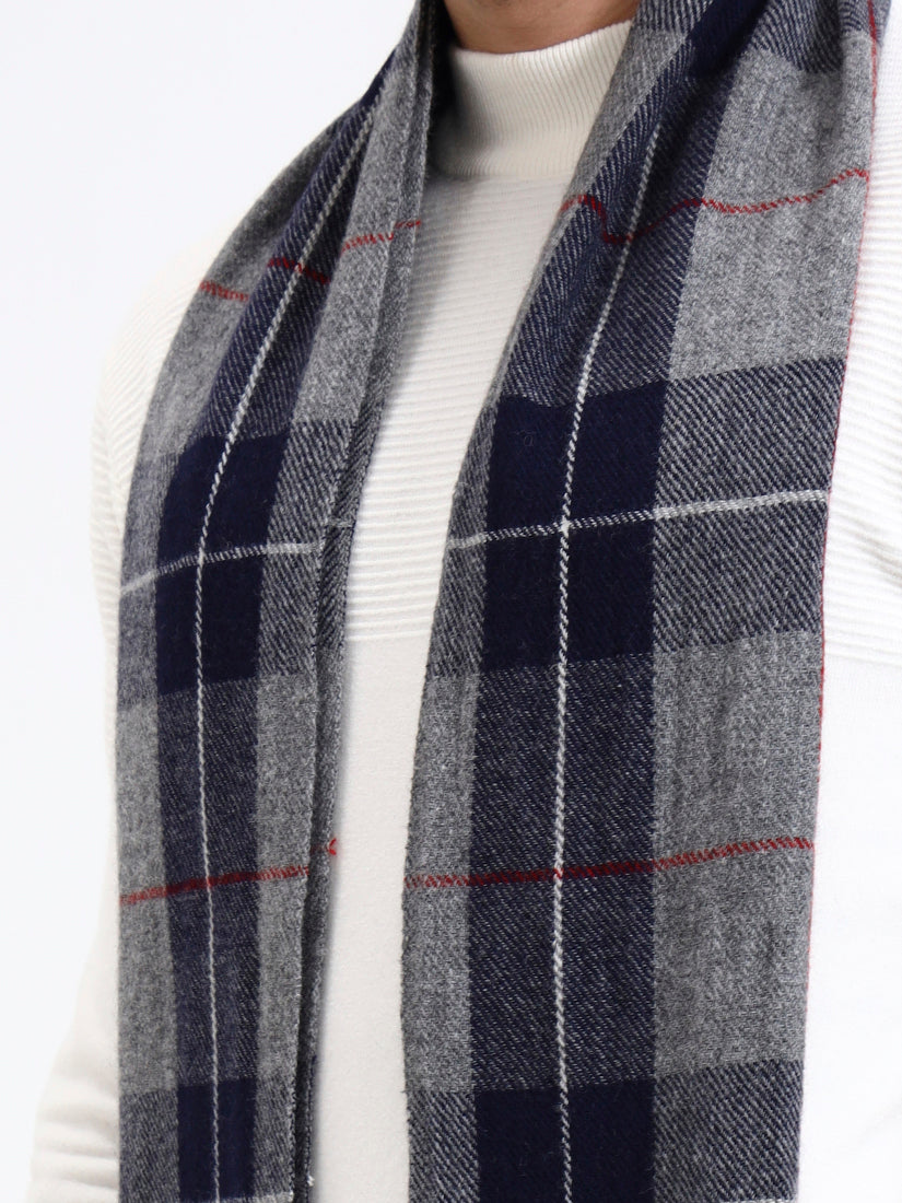 Woven from pure Lambswool, this grey and navy checked scarf combines soft texture with classic patterning. The brushed finish enhances its warmth and comfort, a timeless accessory that brings quiet sophistication to winter style.
