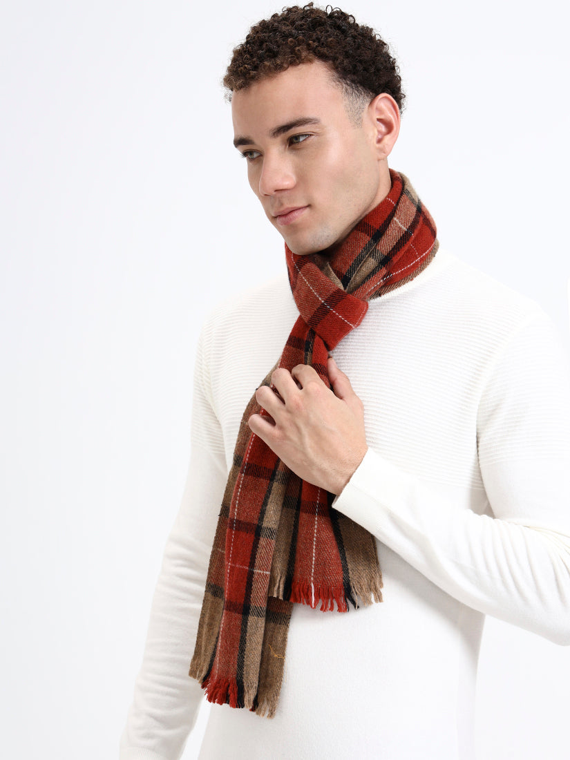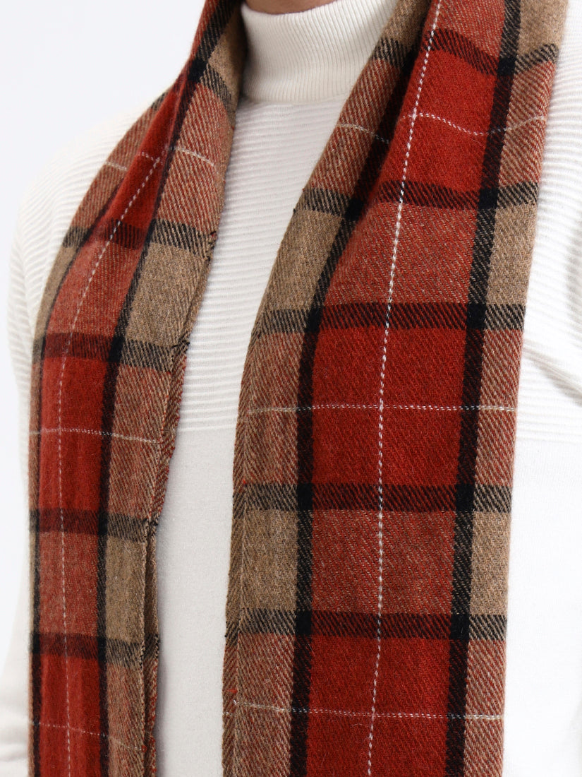 Soft, warm, and beautifully brushed, this Lambswool scarf in red and camel check offers effortless comfort. A versatile essential that brings colour, texture, and quiet elegance to winter dressing.