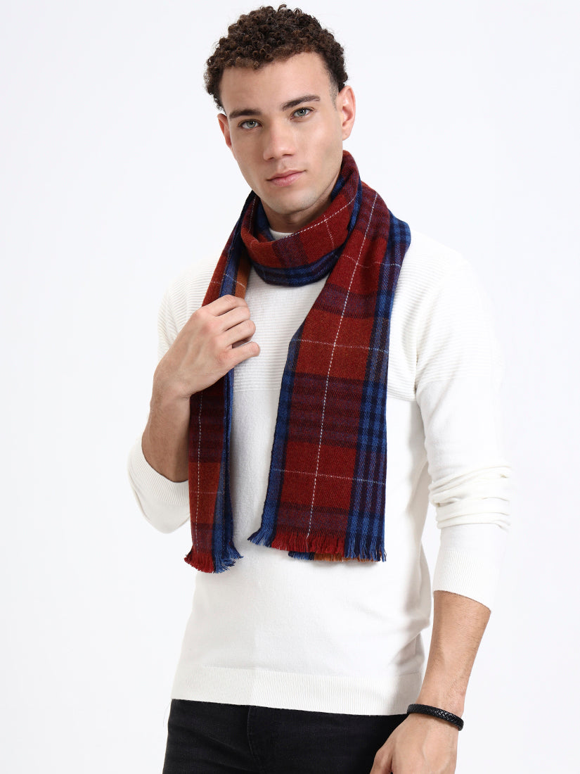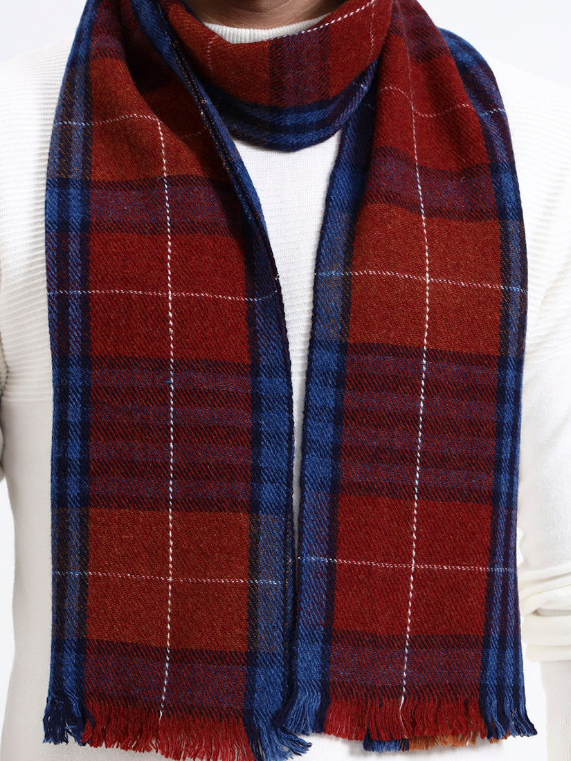 Soft, rich, and naturally insulating, this Lambswool scarf in red and blue check delivers warmth with sophistication. The brushed finish enhances its texture and drape, making it a winter essential for both comfort and style.