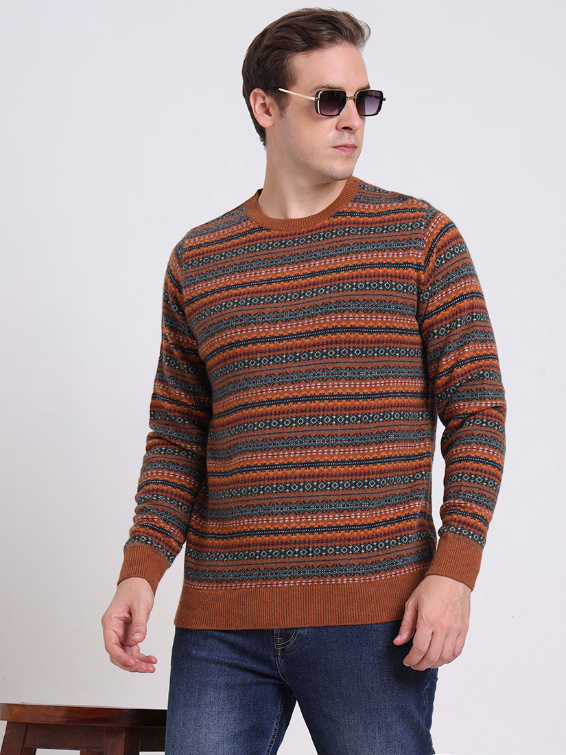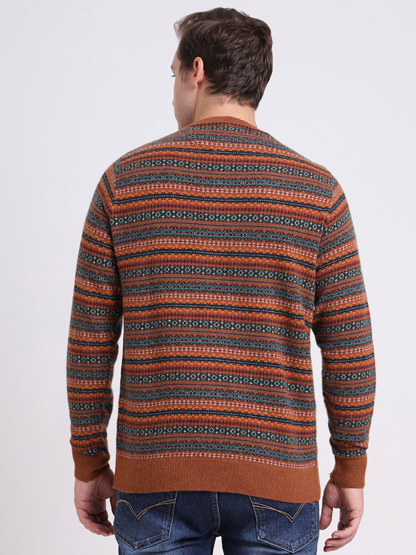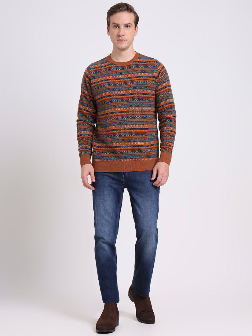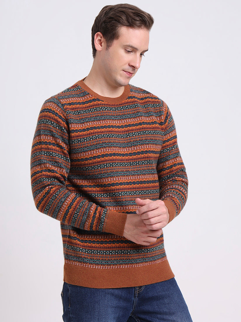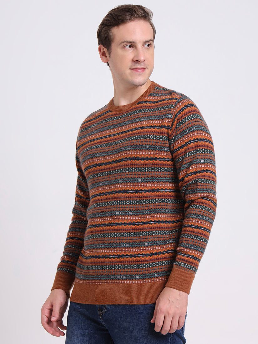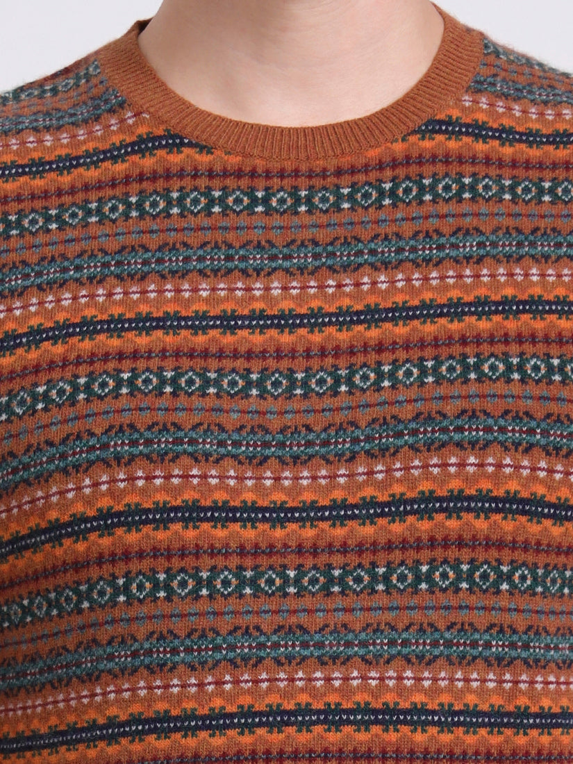 Crafted in pure lambswool, the Highland Amber Pullover captures the richness of mustard hues interlaced with heritage Fair Isle–inspired motifs. Its patterning speaks of timeless tradition, while the lightweight softness ensures all-day comfort. A versatile piece that transitions seamlessly from casual refinement to elevated layering.