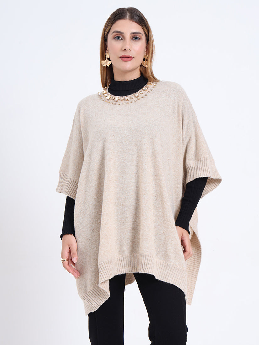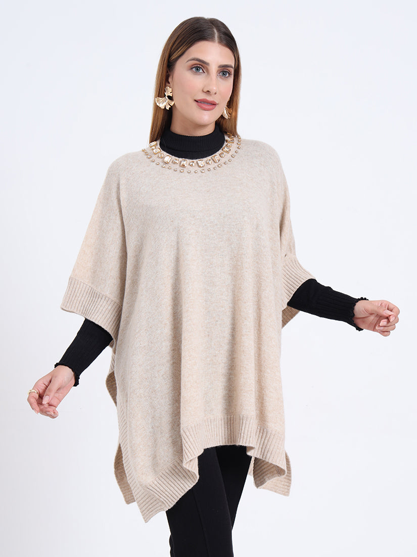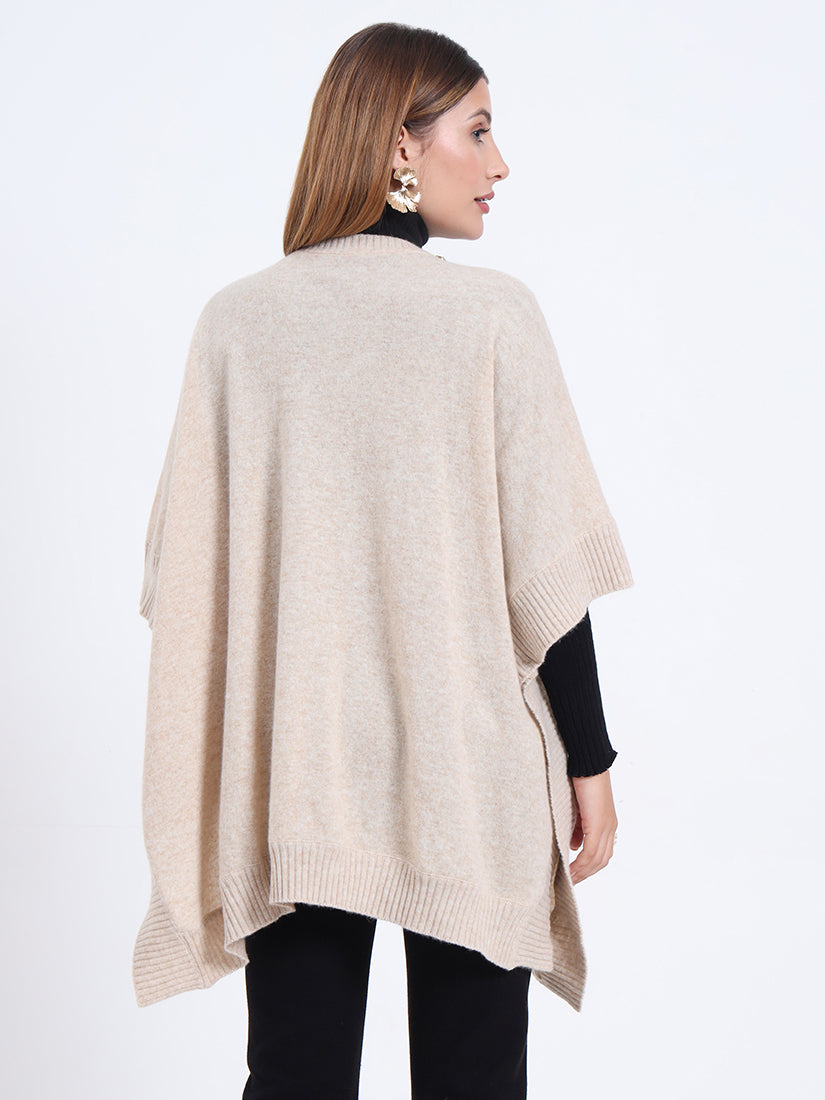 The Ivory Aura Poncho offers creamy softness in fine wool blends, accented with subtle neckline detail. A timeless piece that elevates minimalist chic.