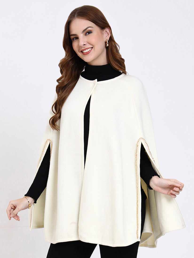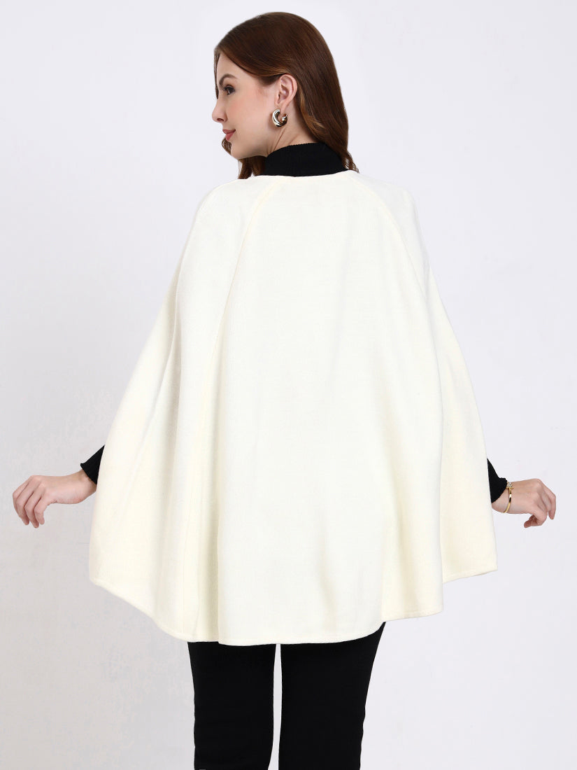 Pure and refined, the Ivory Crest Poncho drapes effortlessly in soft wool blends. Minimalist yet striking, it elevates everyday elegance with subtle sophistication.