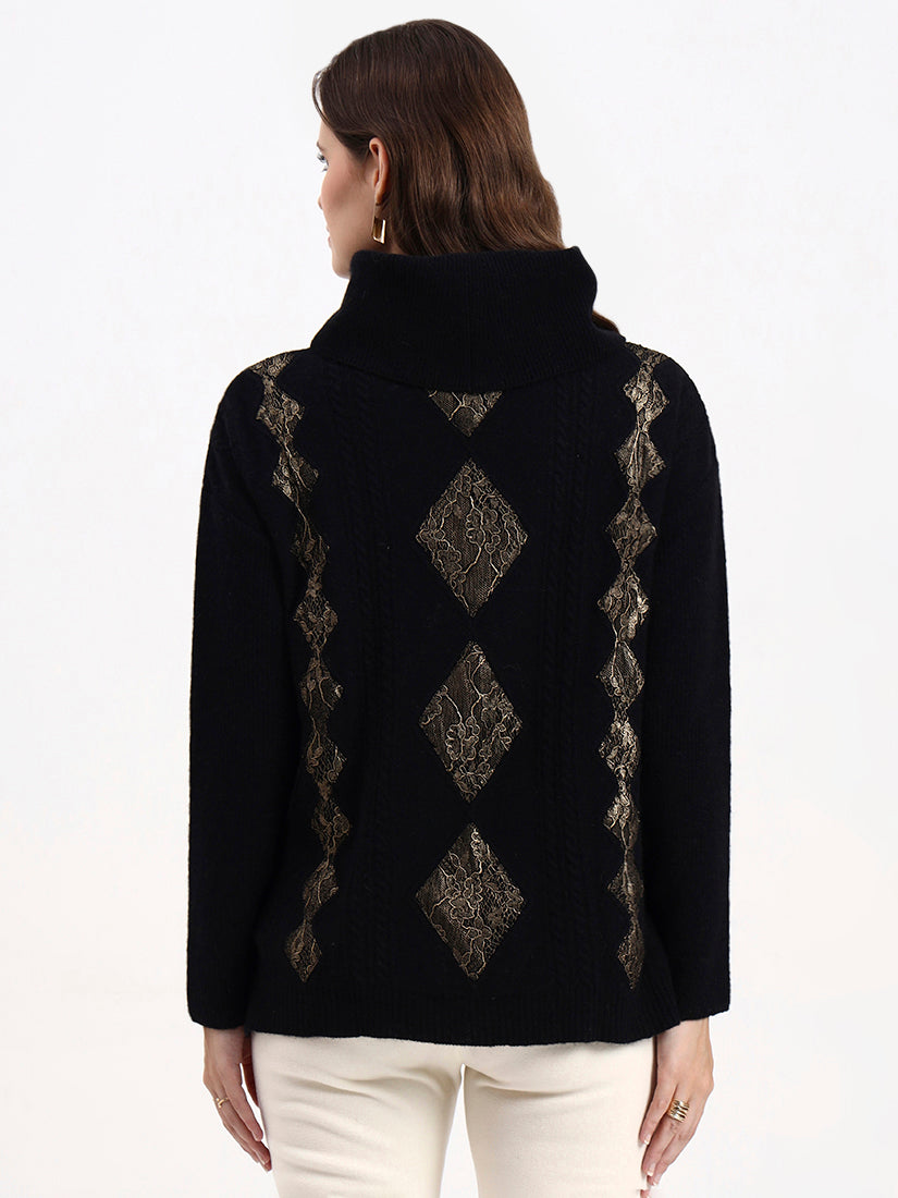 A serene, soft cream canvas lifted by delicate metallic lace accents for a luminous finish. Effortless and poised, pairing beautifully with winter neutrals or rich jewel tones.