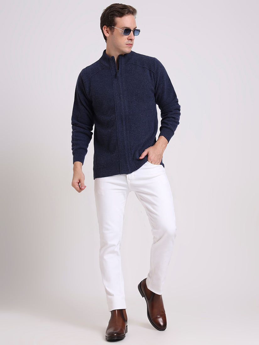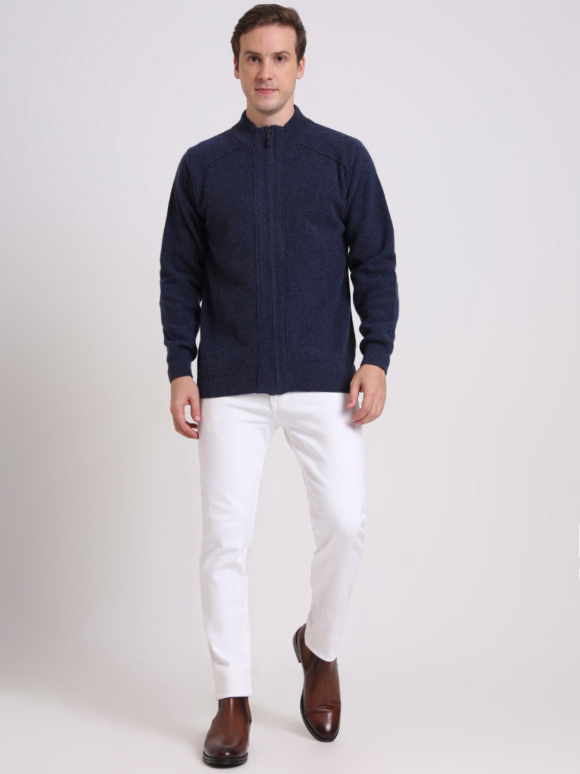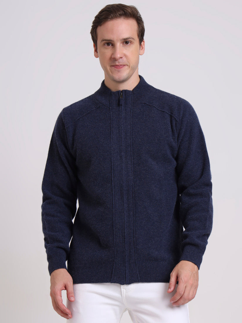 A timeless navy inspired by the depth of Scottish lochs. Crafted in lambswool, this full-zip cardigan lends effortless polish while offering warmth and versatility, whether layered over shirting or worn casually.