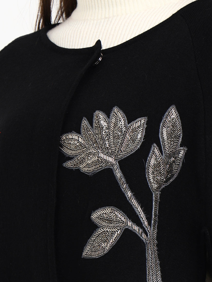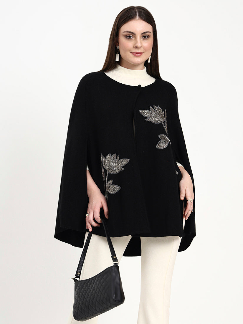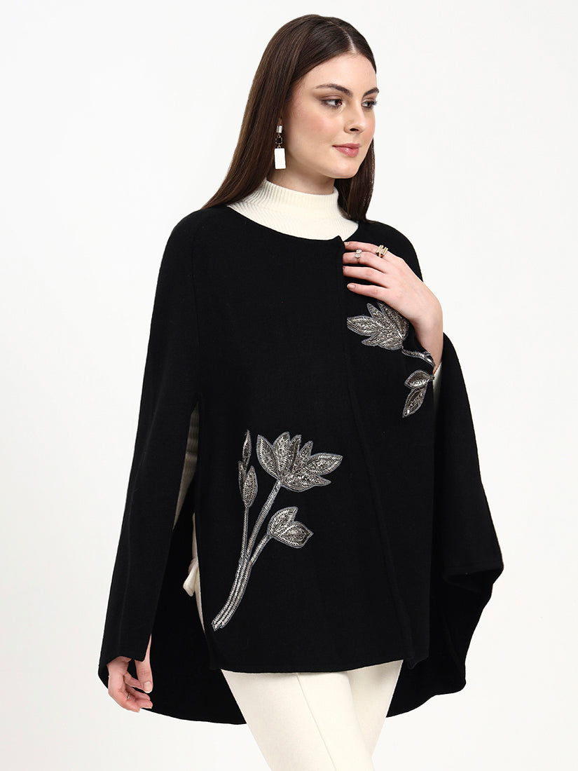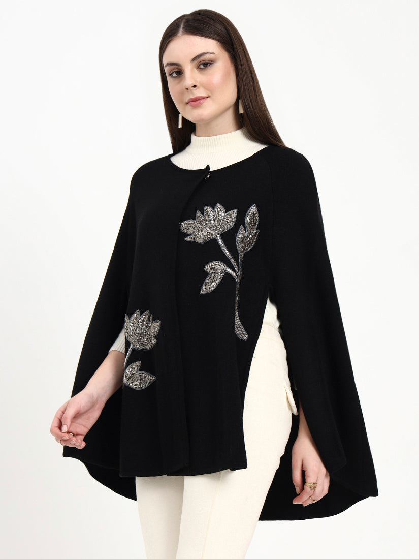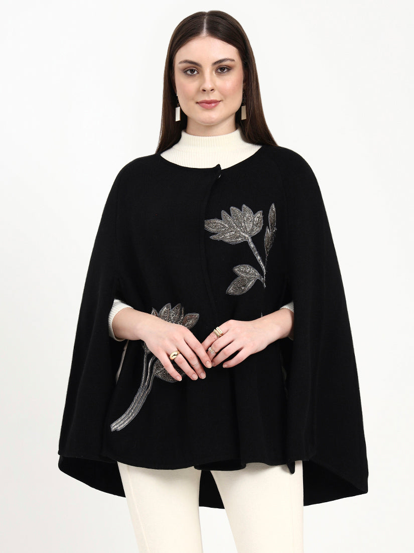 Marcelline Silver Embroidered Poncho brings together comfort and refined luxury. Its graceful drape and subtle silver embroidery create a look that’s poised yet understated, embodying modern elegance with a timeless, effortlessly sophisticated charm.