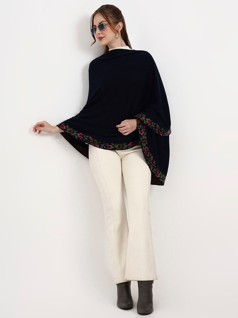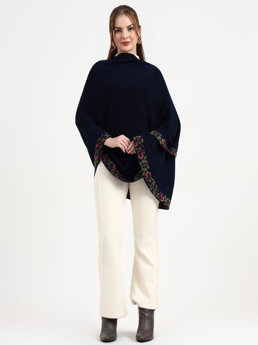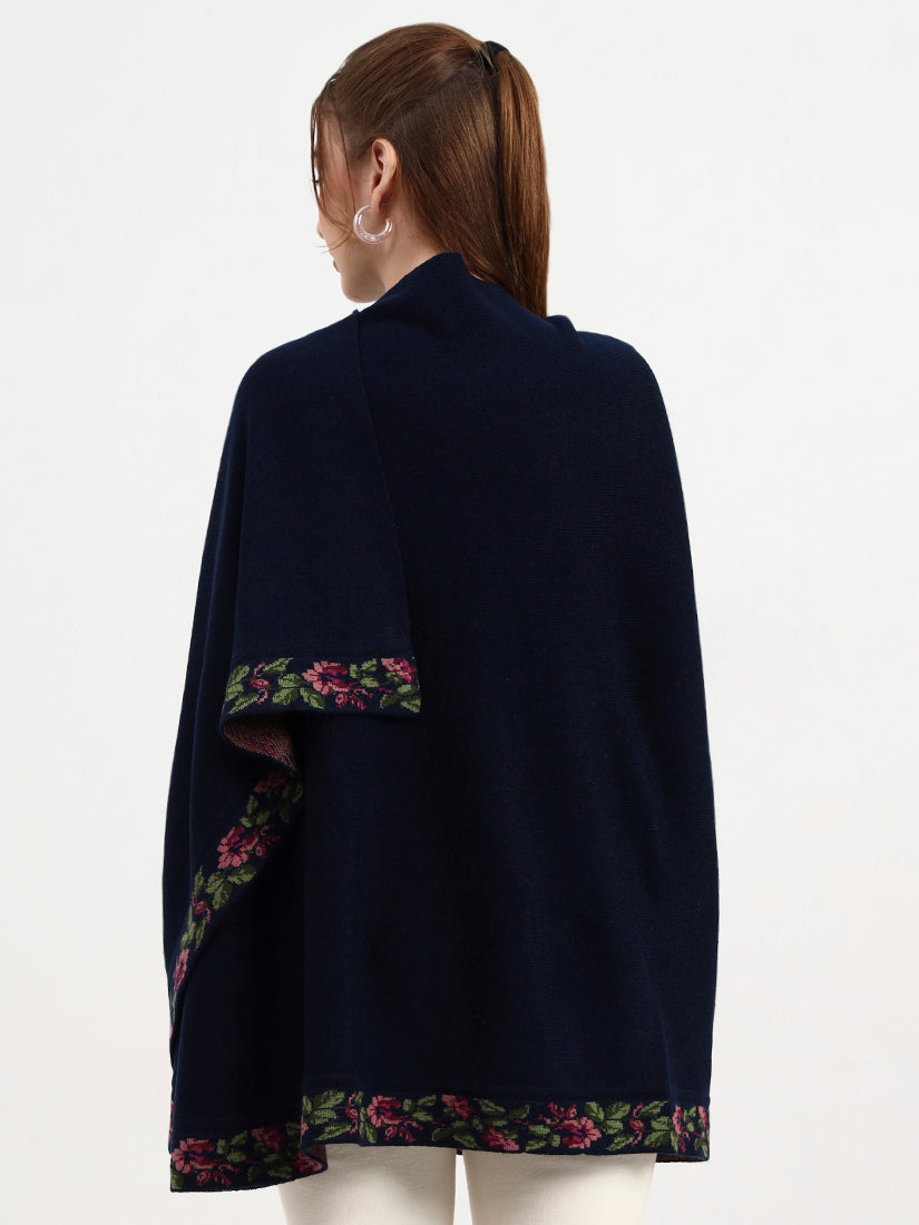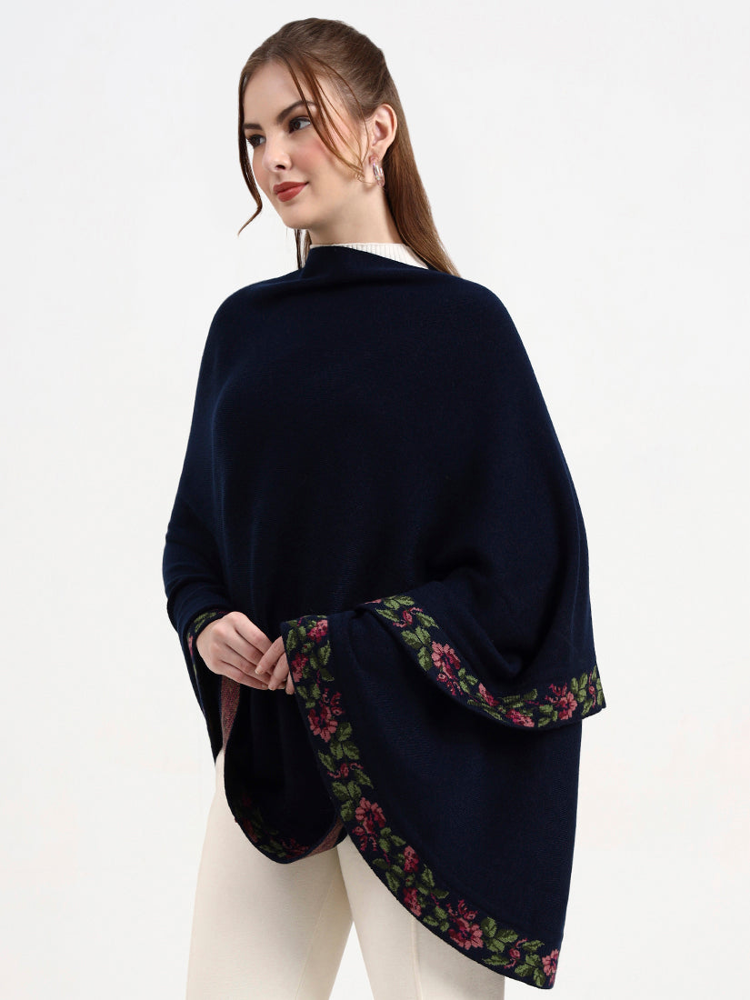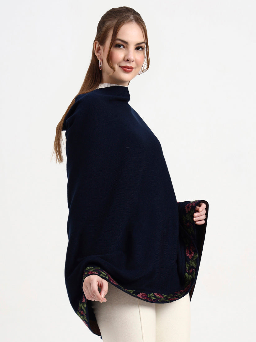 Inky navy canvas framed with delicate tonal floral embroidery and subtle sheen, making it perfect for understated evening sophistication.