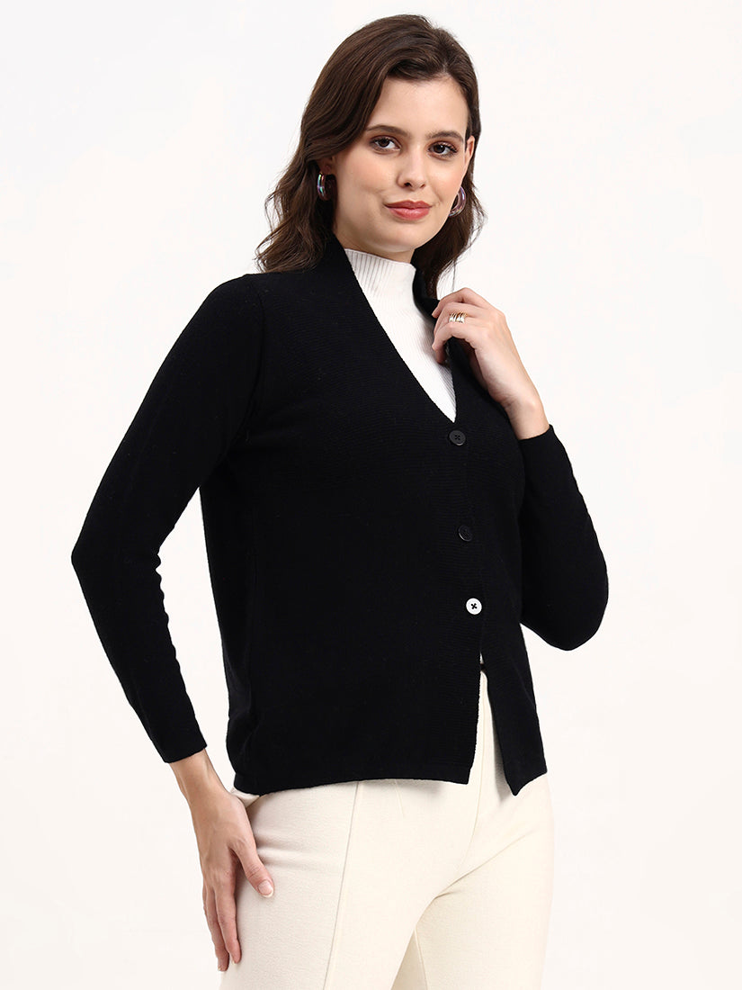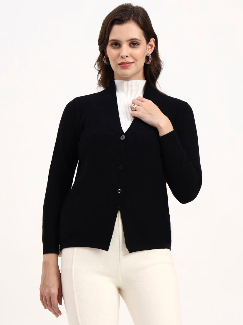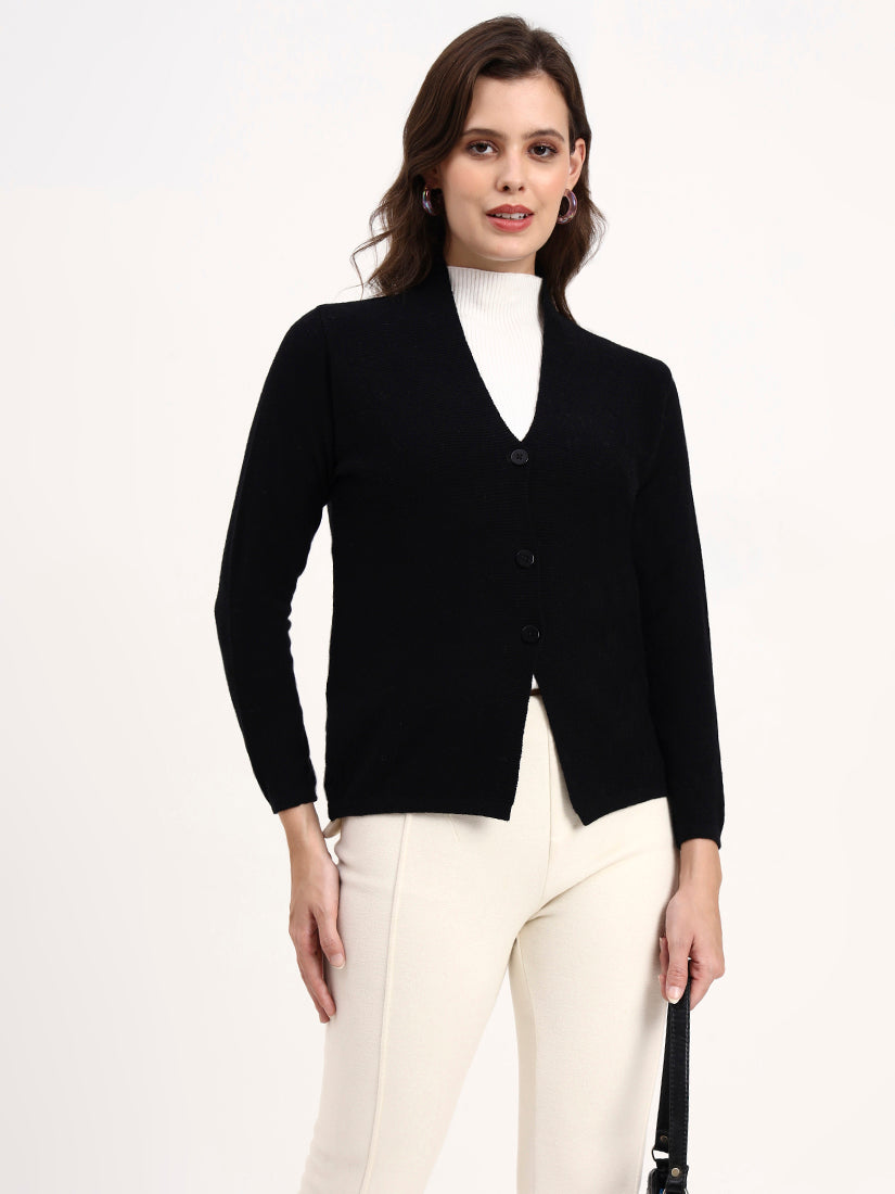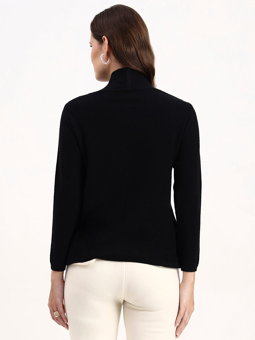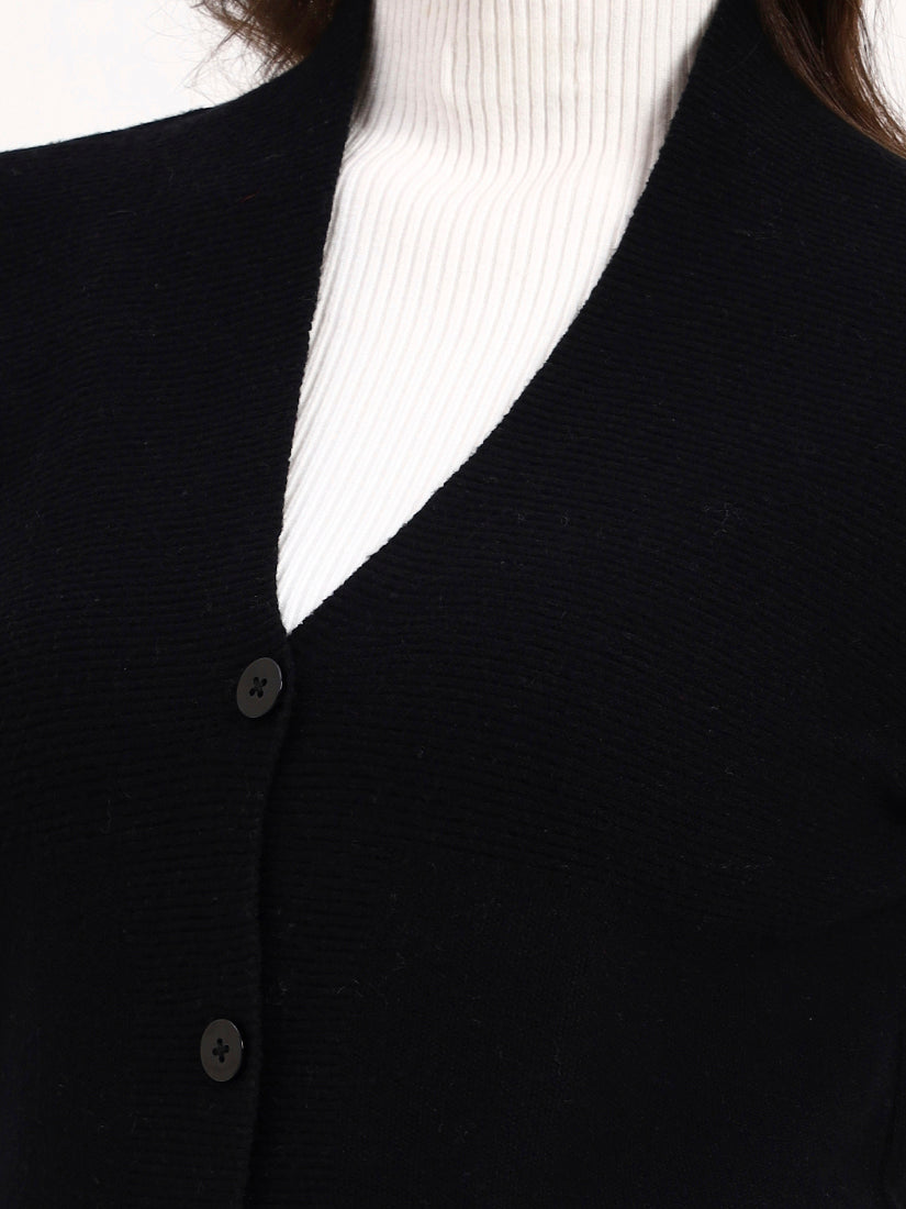 Sleek and versatile in a deep midnight black. Its fluid drape and clean tailoring create an understated silhouette, perfect for layering from office to weekend.