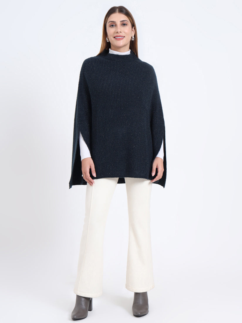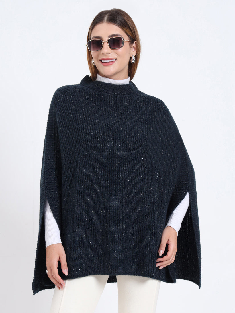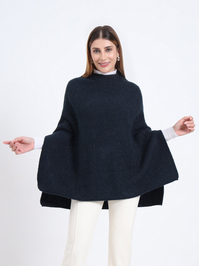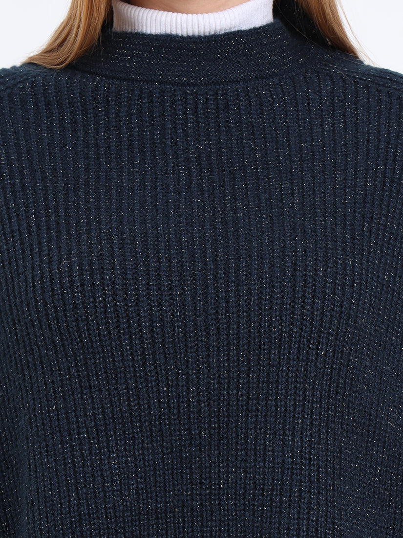Deep navy elevated with glints of shimmer. A perfect evening companion that pairs heritage knitwork with a contemporary polish.