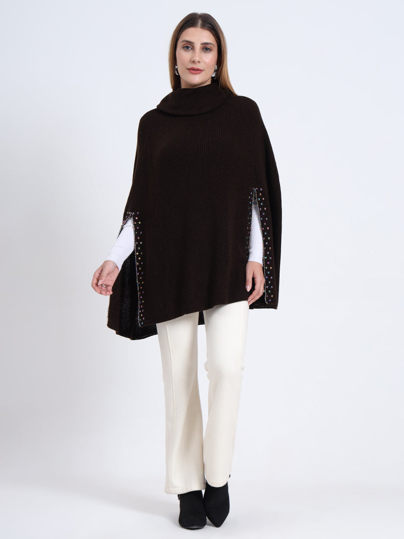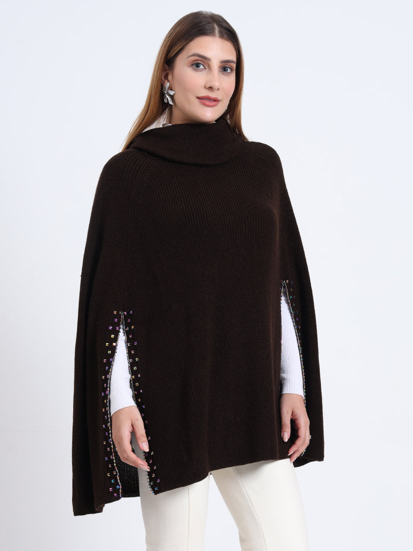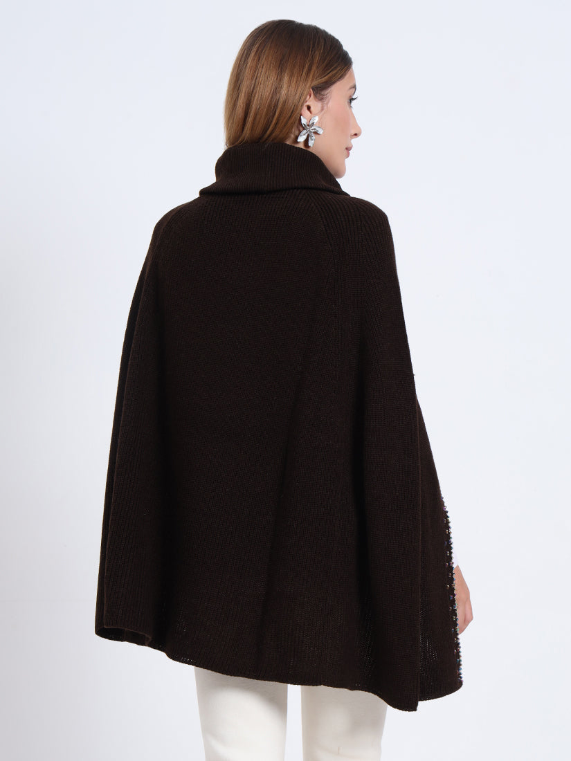 In rich mocha tones, the Mocha Essence Poncho offers earthy warmth and contemporary refinement. A sophisticated piece that transitions seamlessly from day to night.