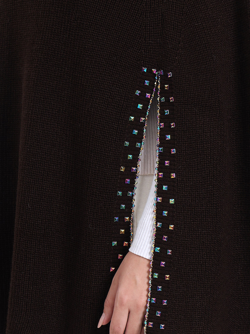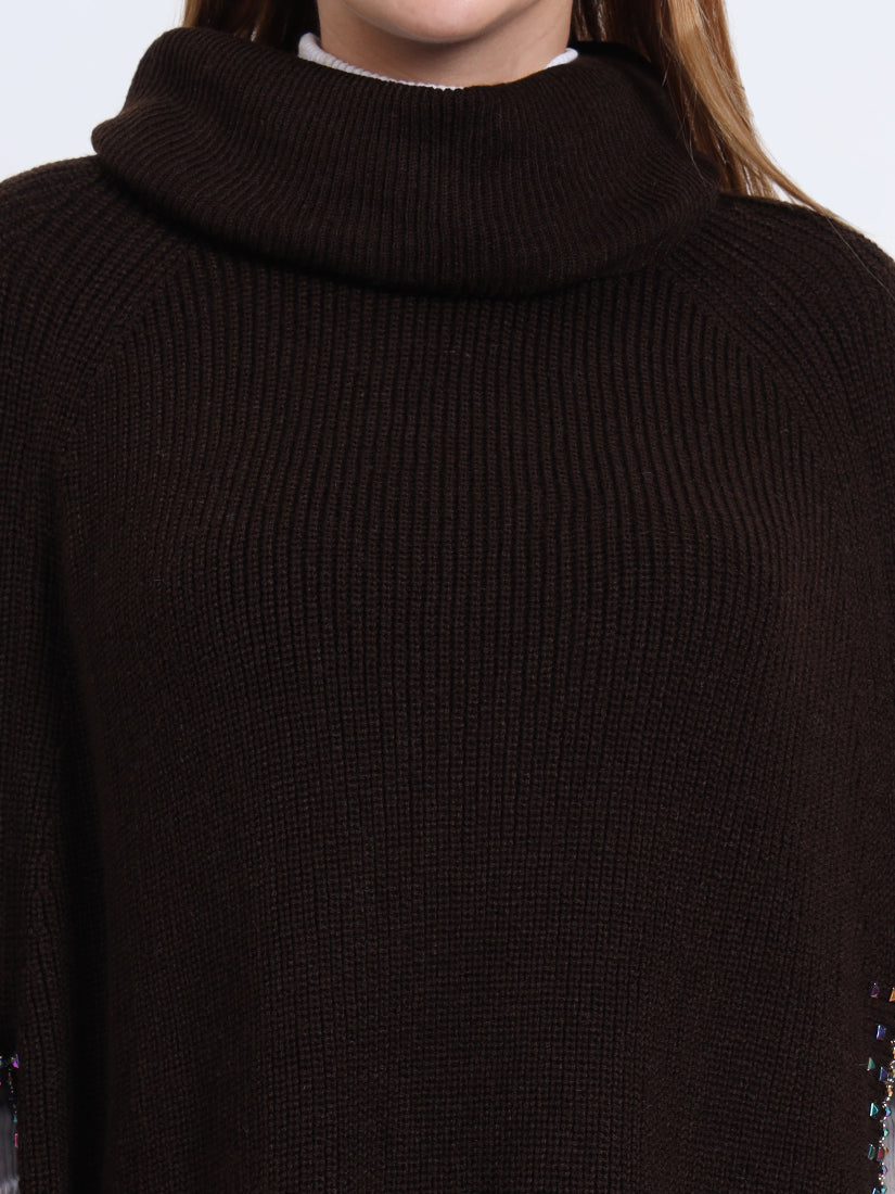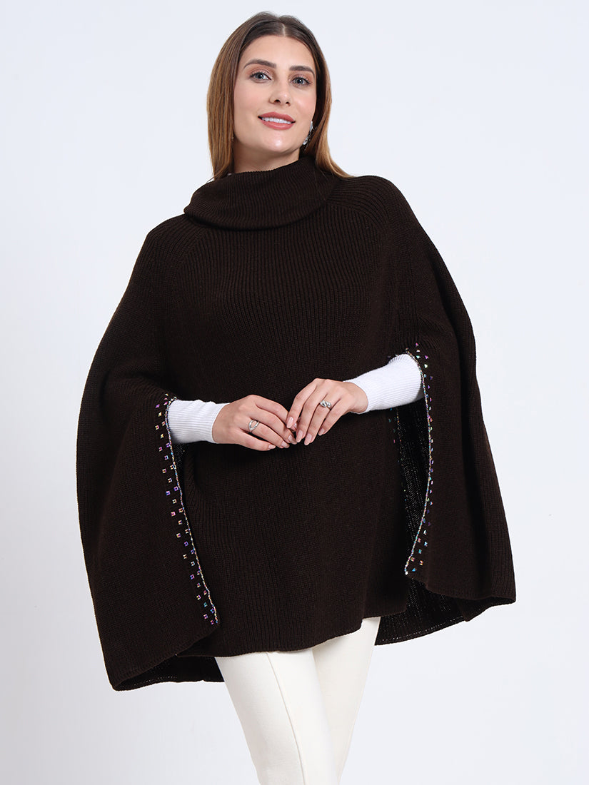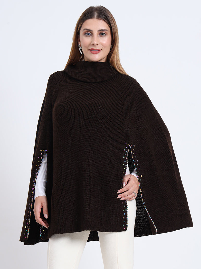 In rich mocha tones, the Mocha Essence Poncho offers earthy warmth and contemporary refinement. A sophisticated piece that transitions seamlessly from day to night.