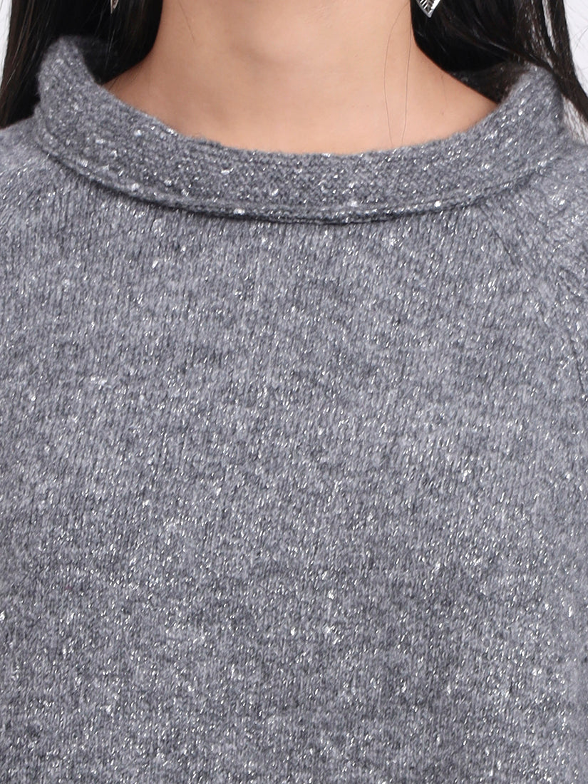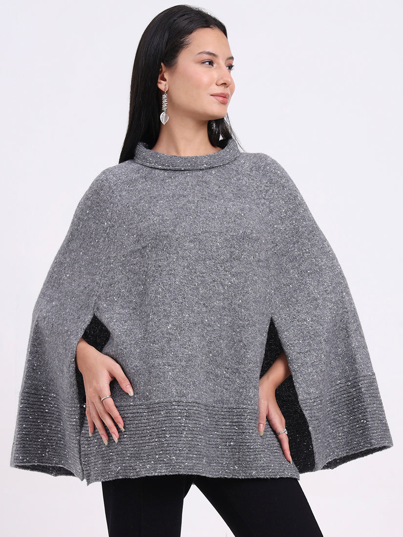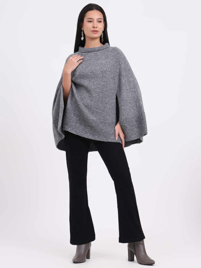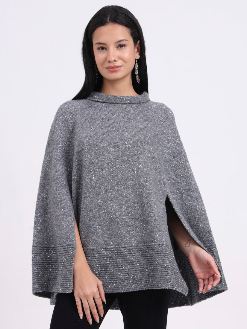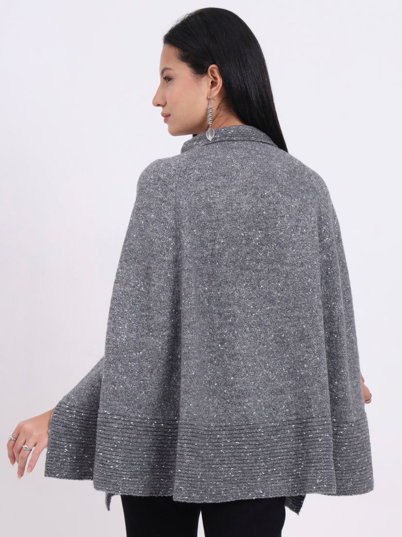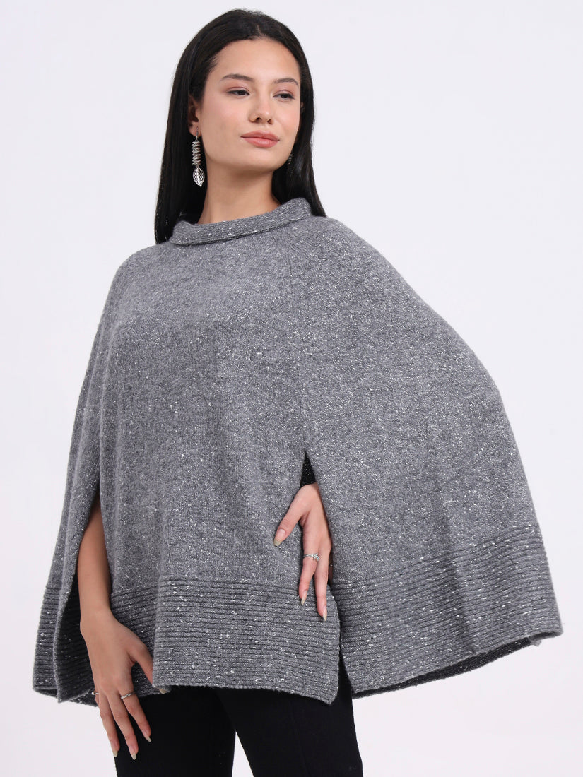 Sleek and versatile, the Moonlit Shimmer Poncho in grey is enriched with subtle sparkle threads, catching light with every movement for understated glamour.