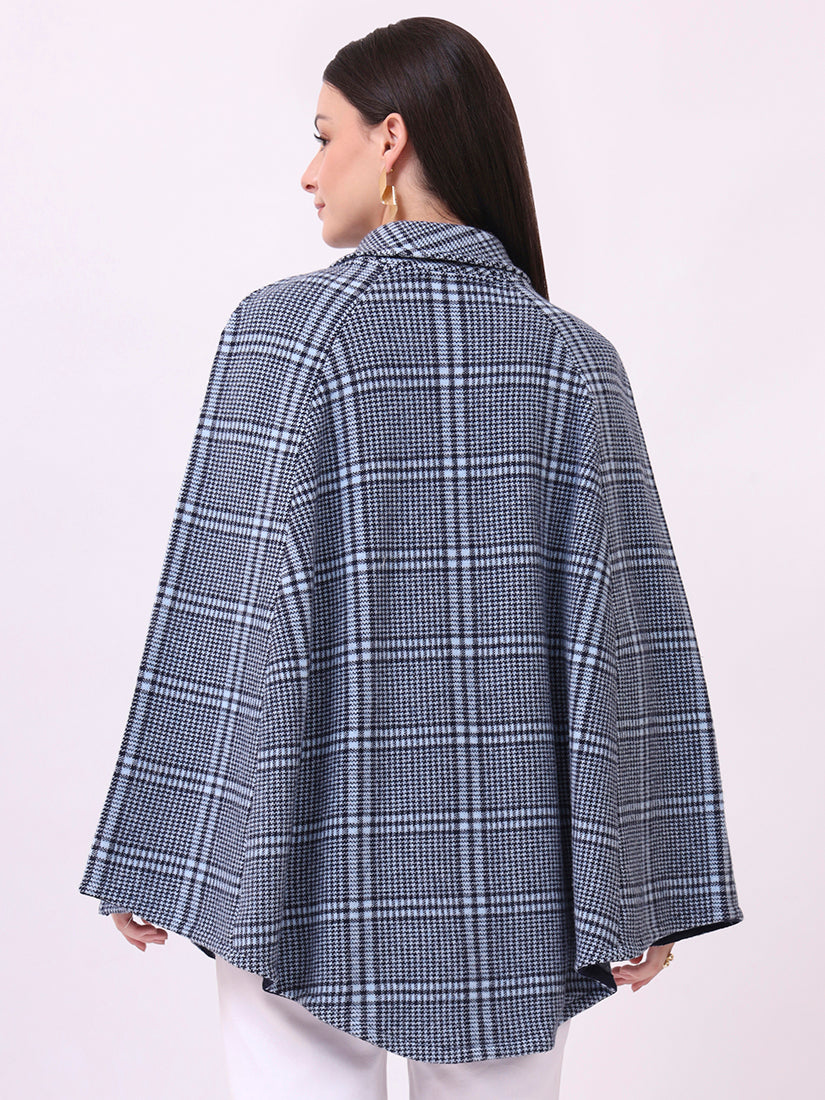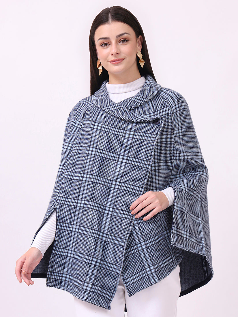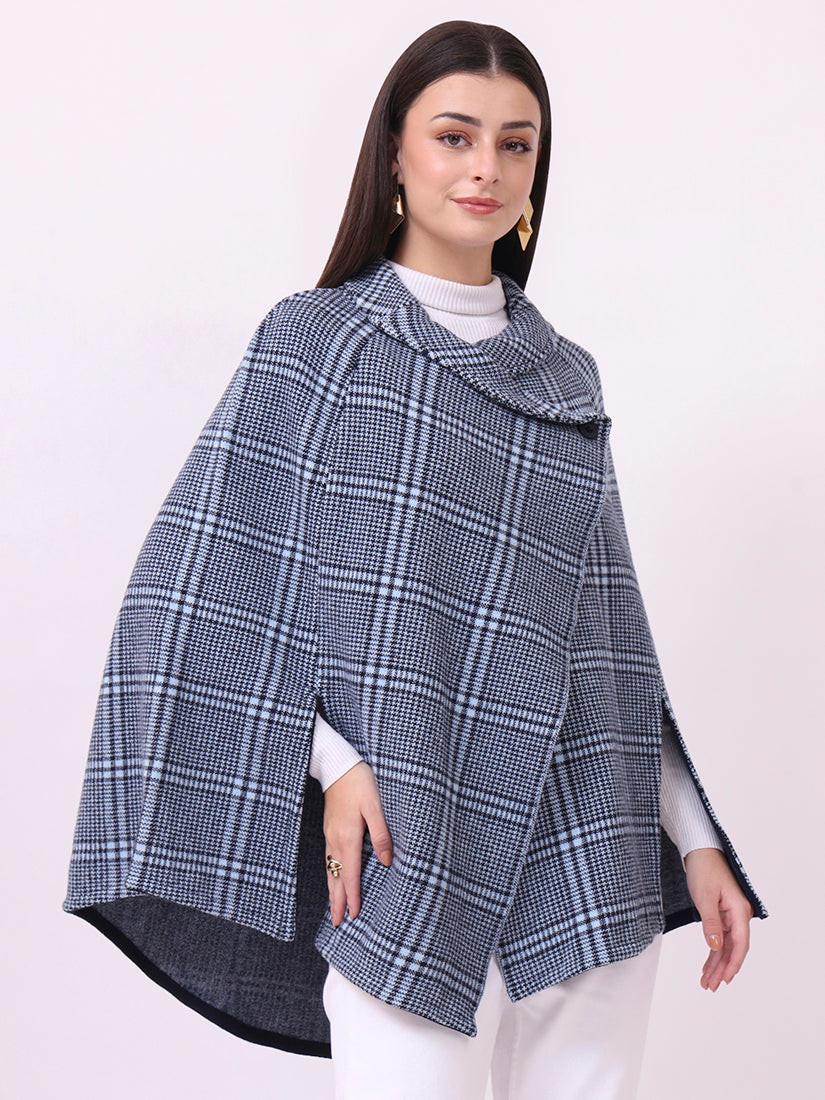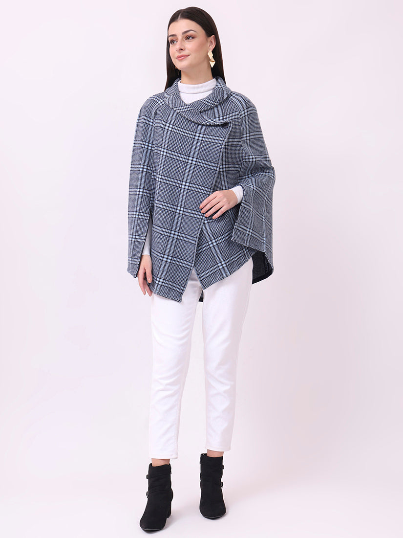 Inspired by the crisp air of the Scottish moors, this navy check poncho balances tradition with modern ease. Its cut-sleeve design ensures graceful layering, making it as practical as it is timeless.