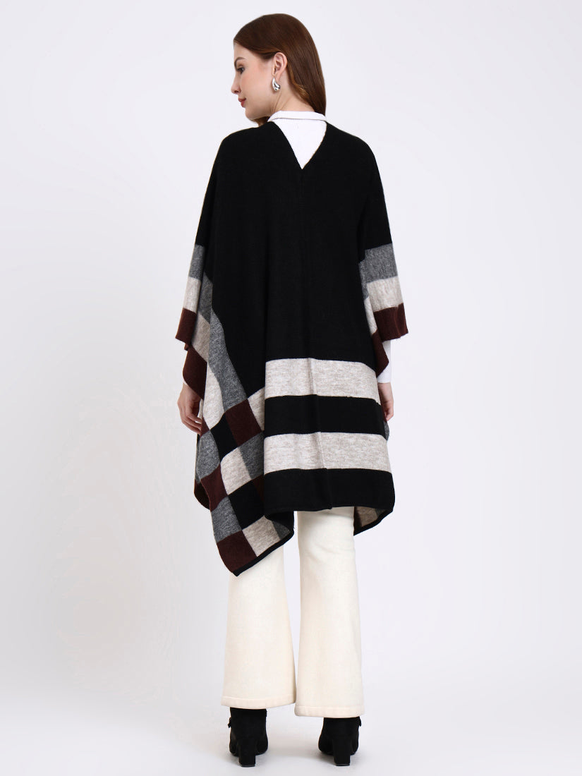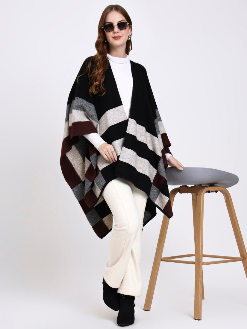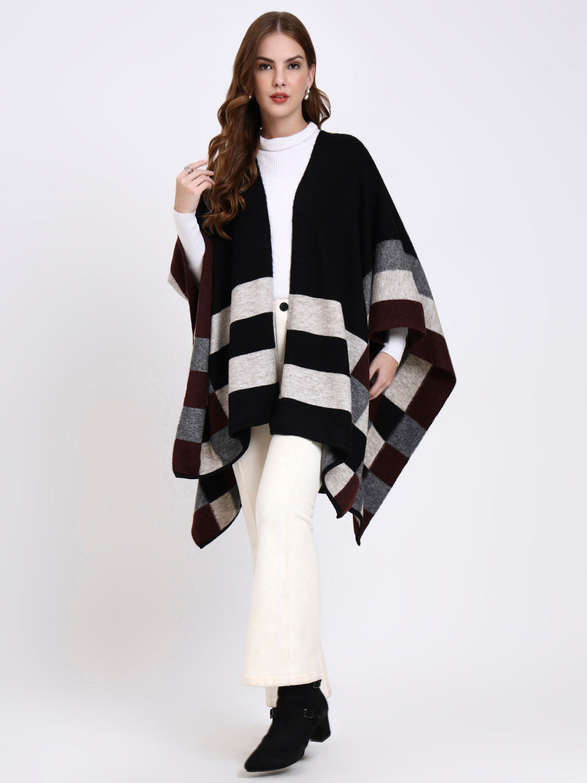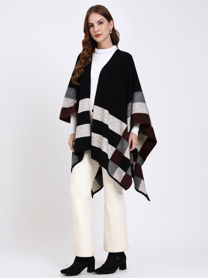 Deep black layered with muted grey and maroon checks creates a bold, architectural look. This variant balances strength with refinement, making it perfect for crisp evenings and statement layering.