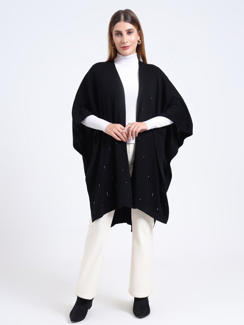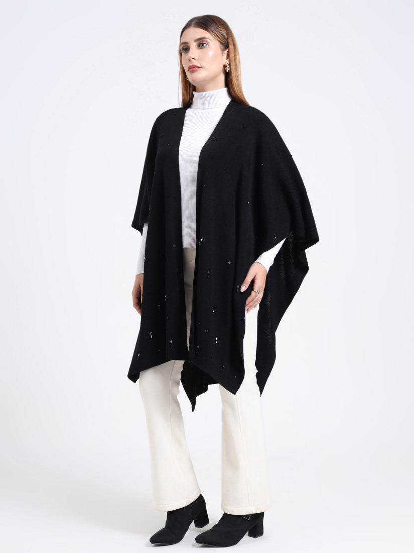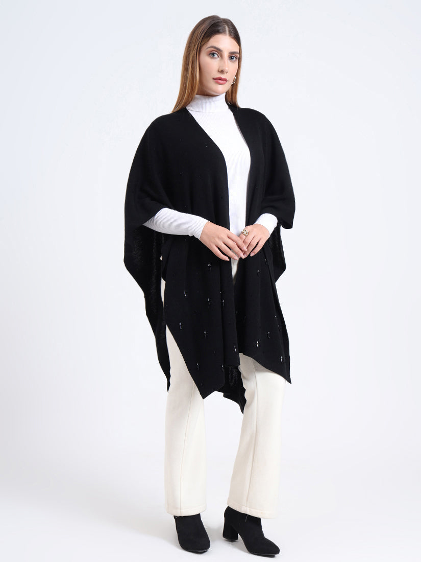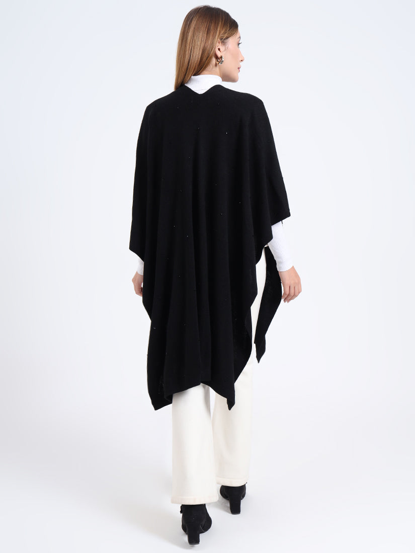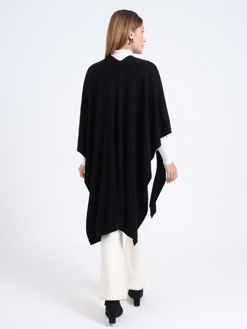 Classic black meets understated sparkle, making this cape ideal for evenings where minimalism and glamour intertwine. A timeless color, elevated with refined shimmer.