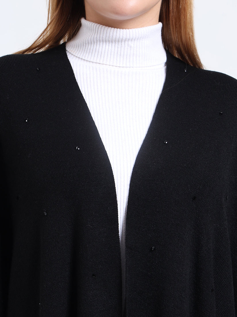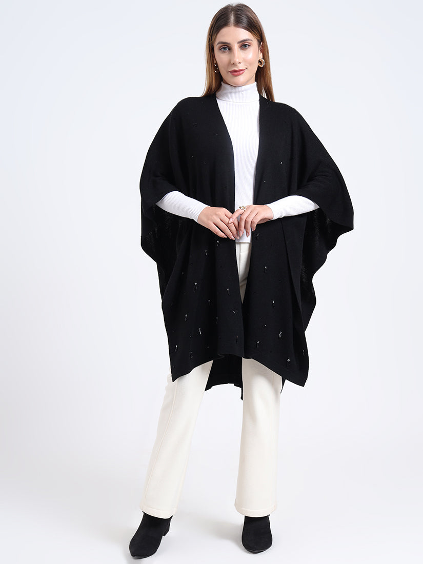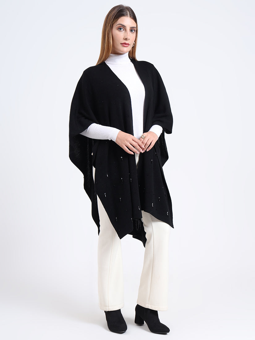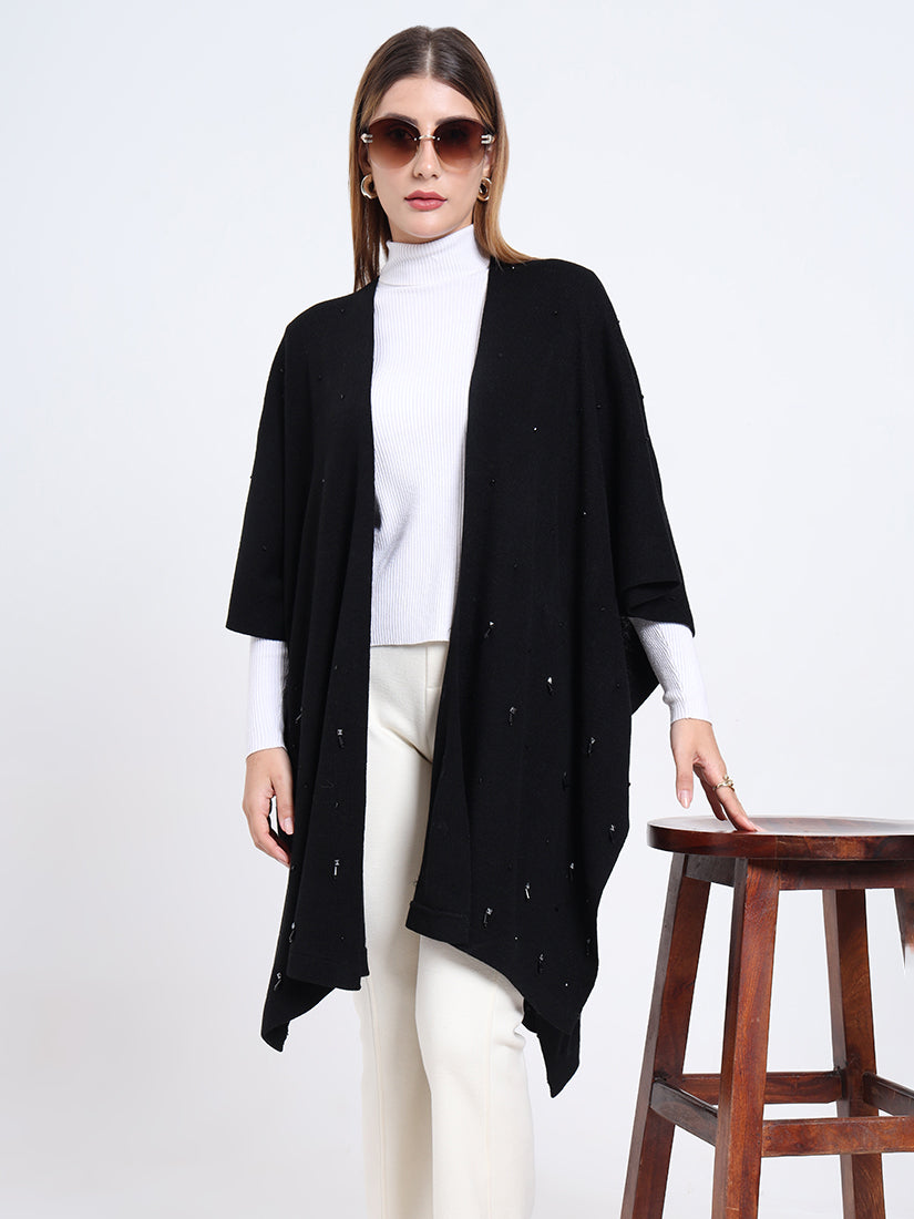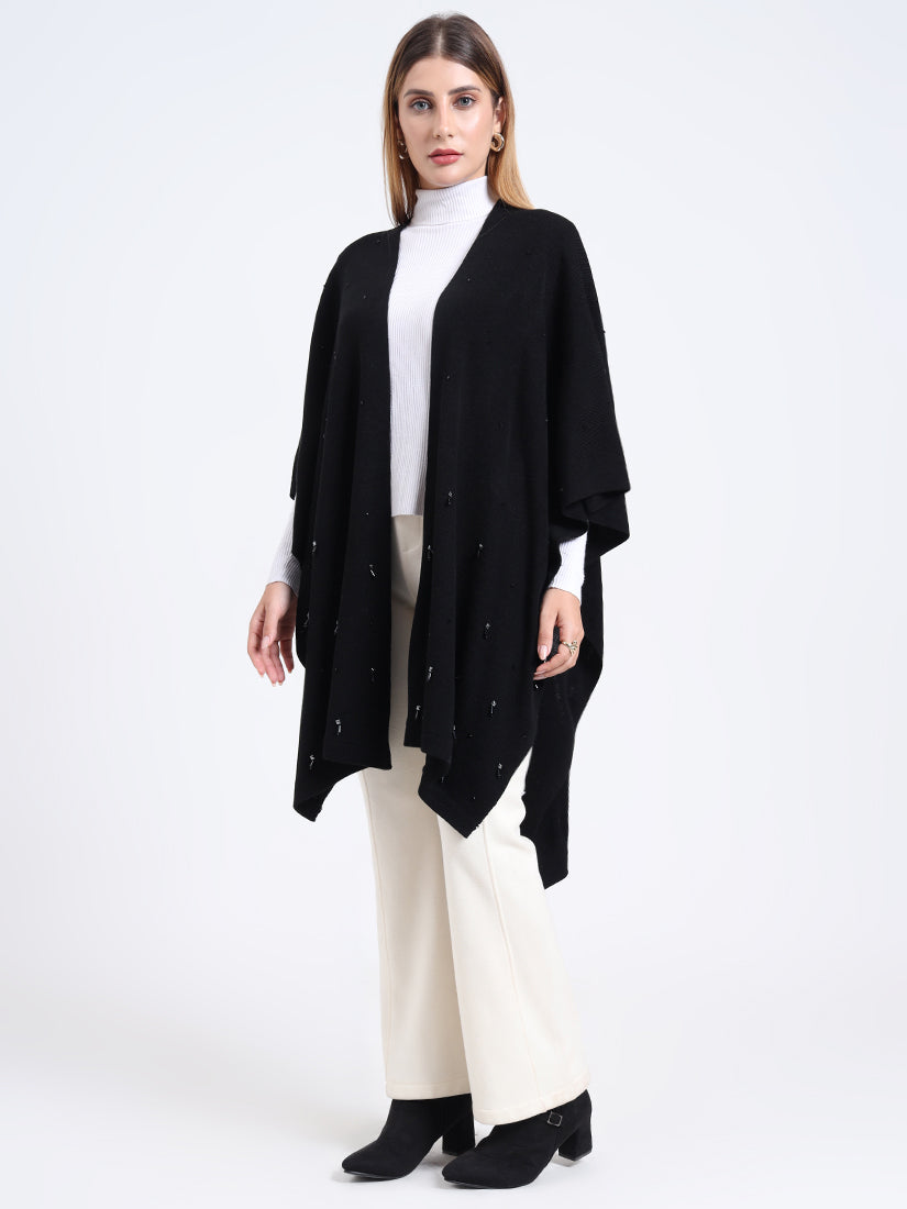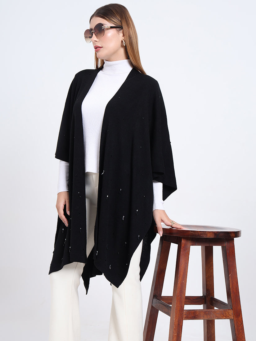Classic black meets understated sparkle, making this cape ideal for evenings where minimalism and glamour intertwine. A timeless color, elevated with refined shimmer.