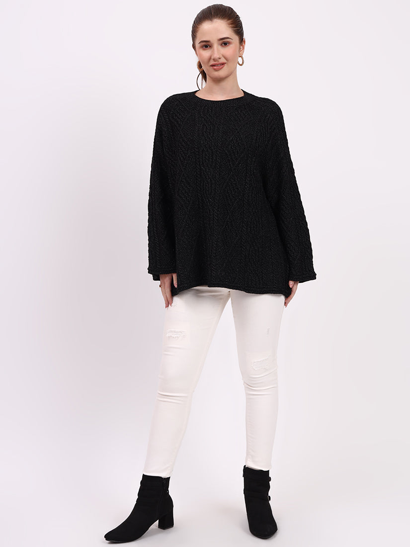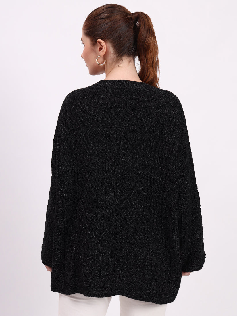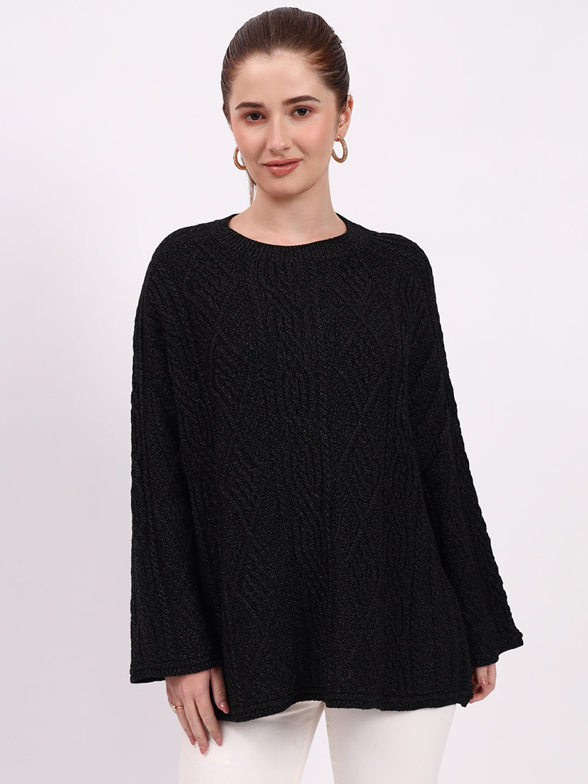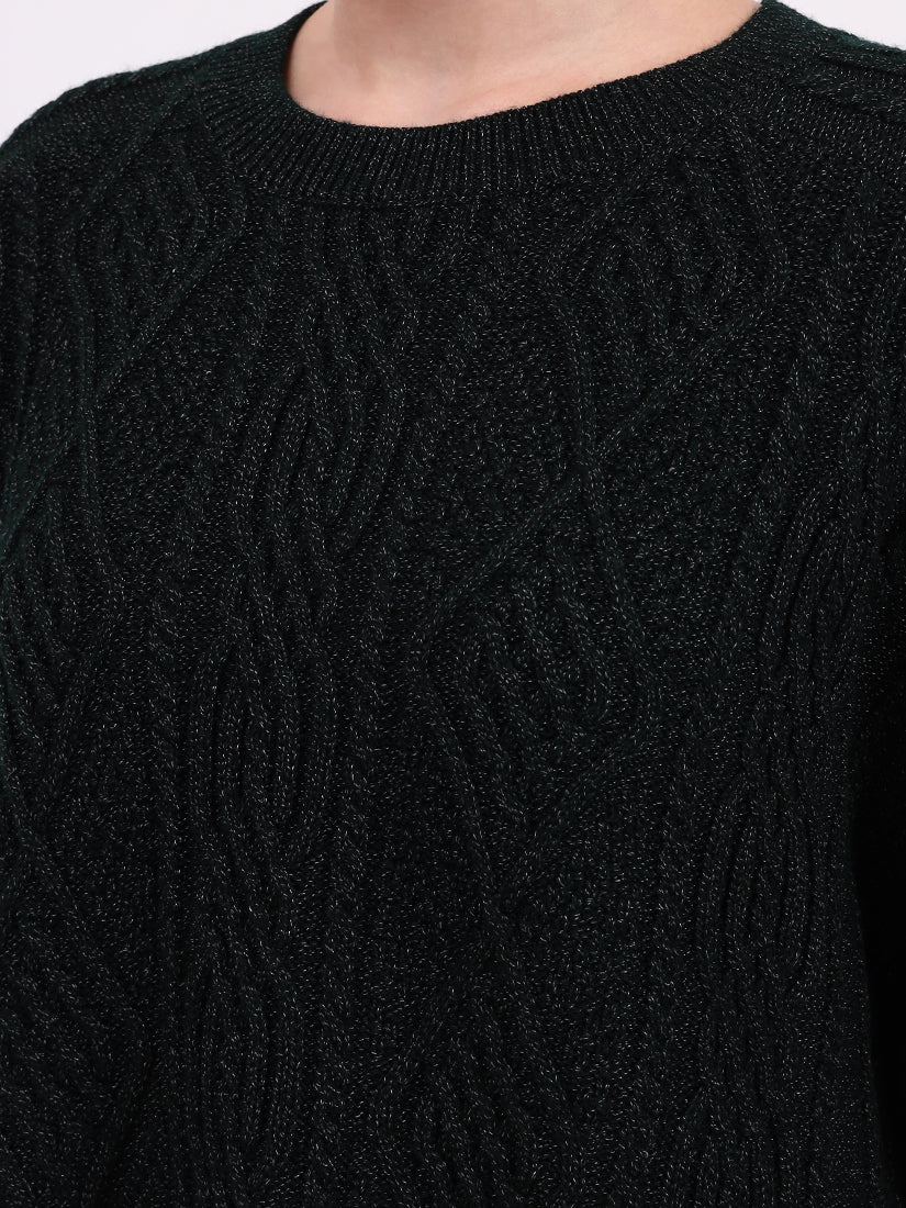 Classic black elevated through heritage cable patterns, blending timeless design with modern ease. A versatile essential for refined winter styling.
