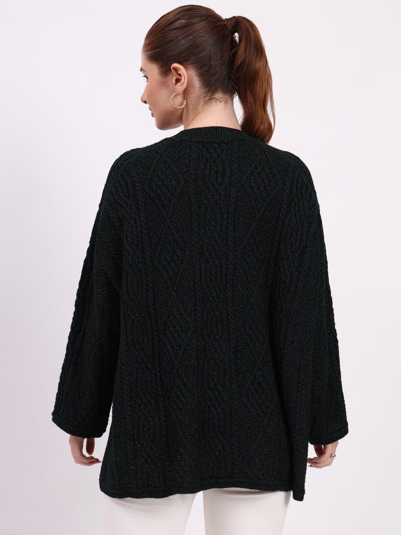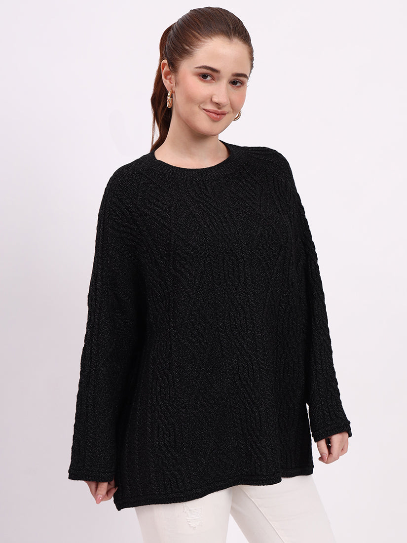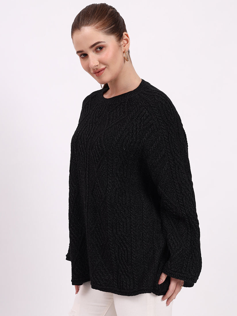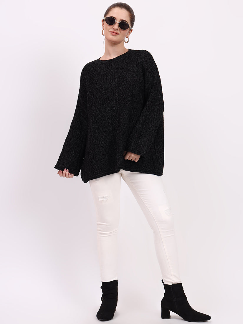 Classic black elevated through heritage cable patterns, blending timeless design with modern ease. A versatile essential for refined winter styling.